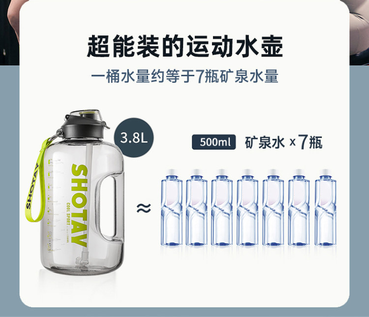 天猫尚泰旗舰店29.9元,可领10元优惠券,实付19.9元到手,是正价89元的2.2折;1500-3800ml超大容量 tritan材质 把手 提绳。超大容量水壶,运动水杯大号水杯。进口材质无异味不漏水,多色可选明星重草吨吨桶,减值运动健身出行都必备,单手开盖加厚提手,带补水刻度,食品级防摔材质领券链接点此