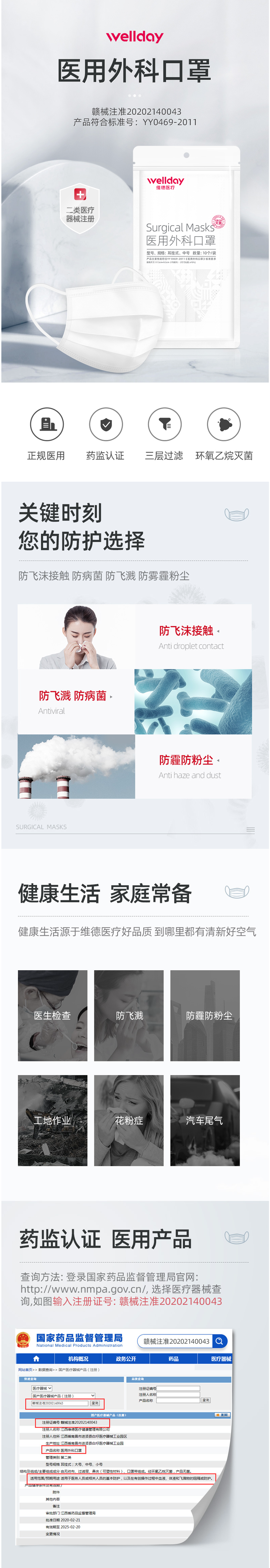 这款维德医疗 一次医用口罩,执行标准号:赣械注准20202140043,在国家药品监督管理局可查到,属于正规靠谱产品。