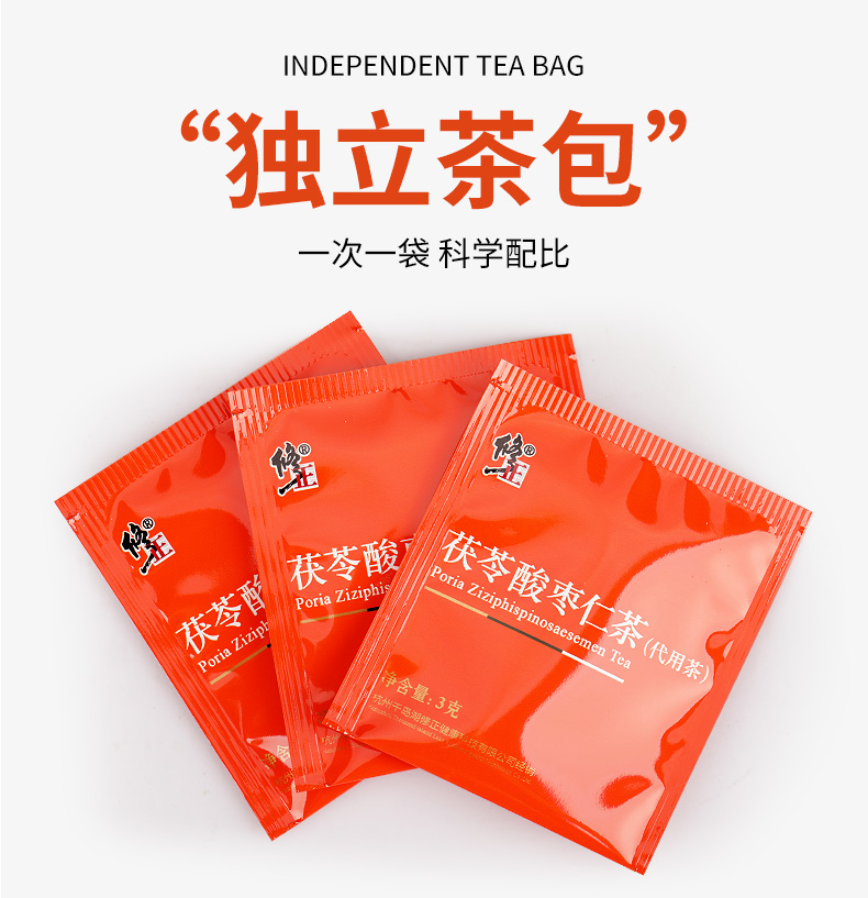 这款修正茯苓酸枣仁茶采用百合、茯苓、莲子、淮小麦、酸枣仁、山药等药食同源成分,通过临界萃取技术,精制而成,适合失眠人群、需要提高睡眠质量的人群饮用,规格为3g*40袋,于睡前半小时-1小时当做茶饮冲泡饮用即可。