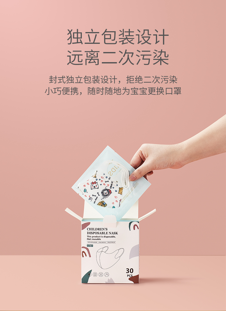这款科巢 婴儿童3d立体口罩独立包装,规格:30片,严选优质熔喷布,纤维直径紧密至微米,强力阻隔,核心过滤;3D立体设计,搭配三层过滤防护,可有效阻隔空气中的粉尘、飞沫等有害物质;内里柔软透气无纺布,温柔呵护宝宝肌肤;手绘插画图案,日常里的艺术点缀;封式独立包装设计,拒绝二次污染,小巧便携,随时随地为宝宝更换口罩。