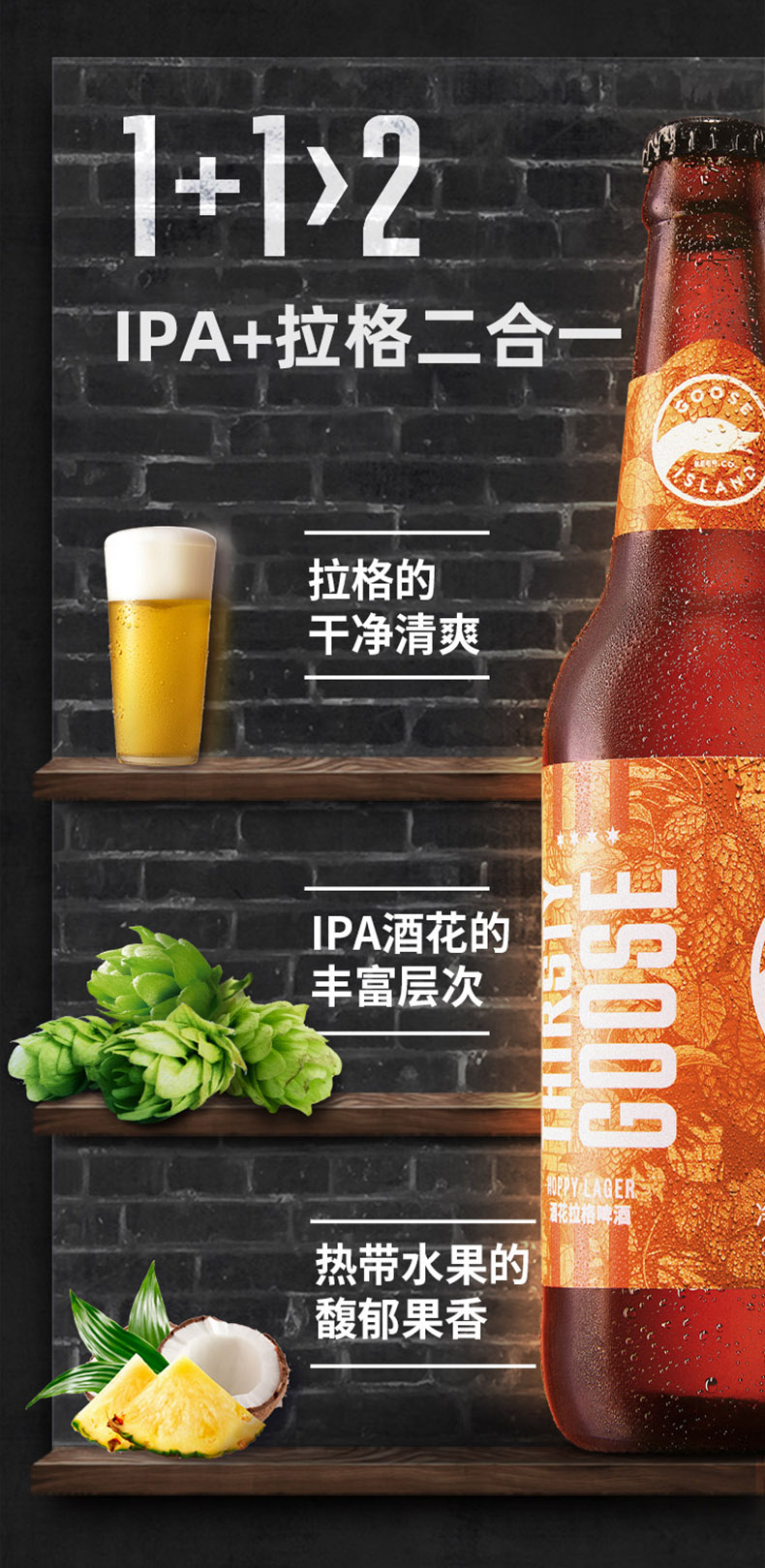 百威英博Goose Island鹅岛IPA印度淡色艾尔精酿啤酒整箱,曾获得6次美国啤酒大奖,是迄今为止IPA组记录的保持者,传承了经典英式IPA风格,酒花香气芬芳悠长,酒体清爽,回味圆润平衡。既是入门级精品,也深受老餮欣赏,酒精度5.9%。