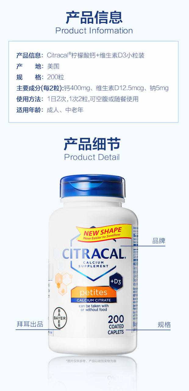 拜耳公司是德国知名的世界500强企业,在医药行业享有很高的声誉。Citracal是隶属于拜耳集团旗下的品牌,主打骨骼健康的钙类产品。