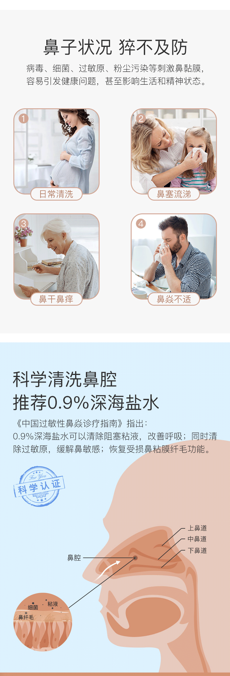 在秋冬季节,宝宝容易出现打喷嚏、流鼻涕、鼻塞、咳嗽的情况,生理盐水是预防感冒、鼻炎的有效方式,同时非常安全。生理盐水不是药,只是一种特殊比例的盐水,它的渗透压值和人的泪水汗水是一样的。所以在使用的时候,不会造成细胞脱水或过度吸水,可以放心使用。