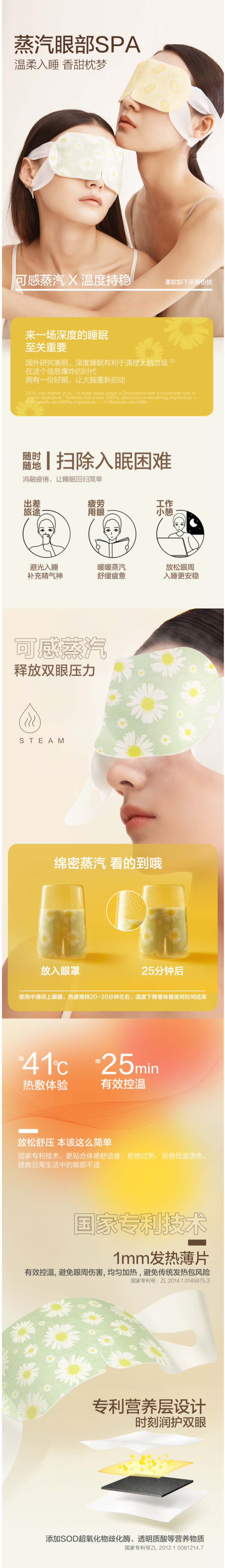 这款珍视明 蒸汽热敷眼罩 蒸汽眼罩,主要作用是舒缓疲劳,安神助眠;恒温41°可以持续20分钟,有利于血液循环,也可淡化黑眼圈,保护视力。