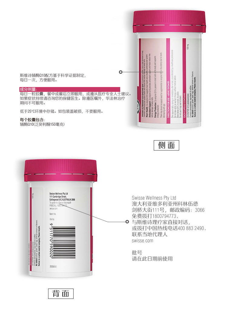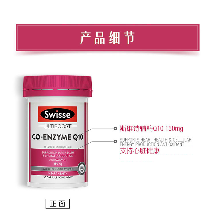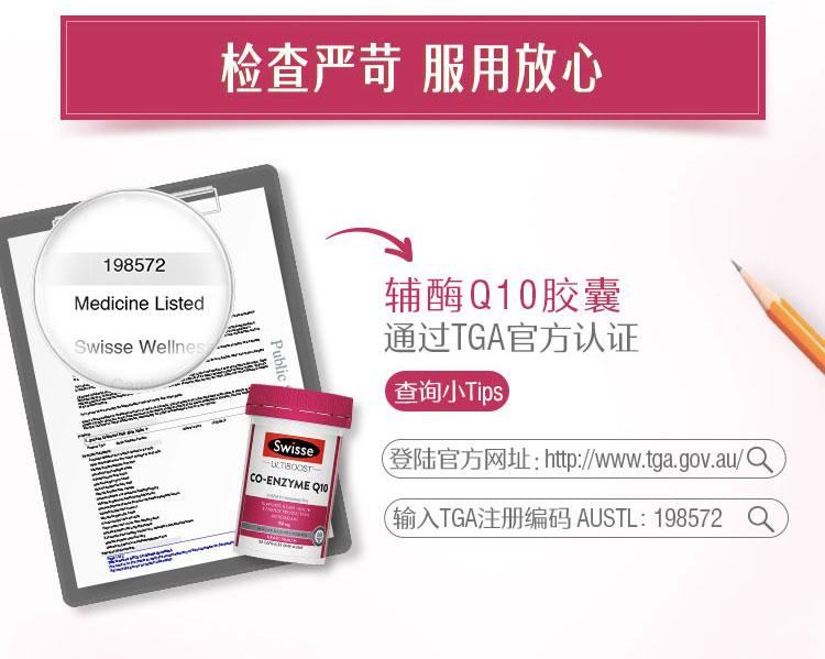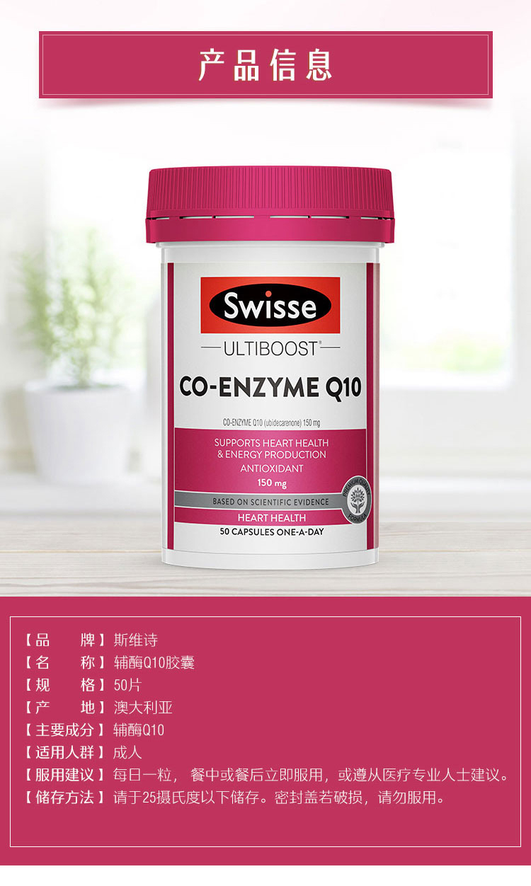 这款Swisse辅酶素Q10软胶囊,澳洲原装进口,辅酶Q10能为心肌提供充足的氧气,活化心肌细胞。运用微生物进行发酵技术,让活性物质更充分释放。