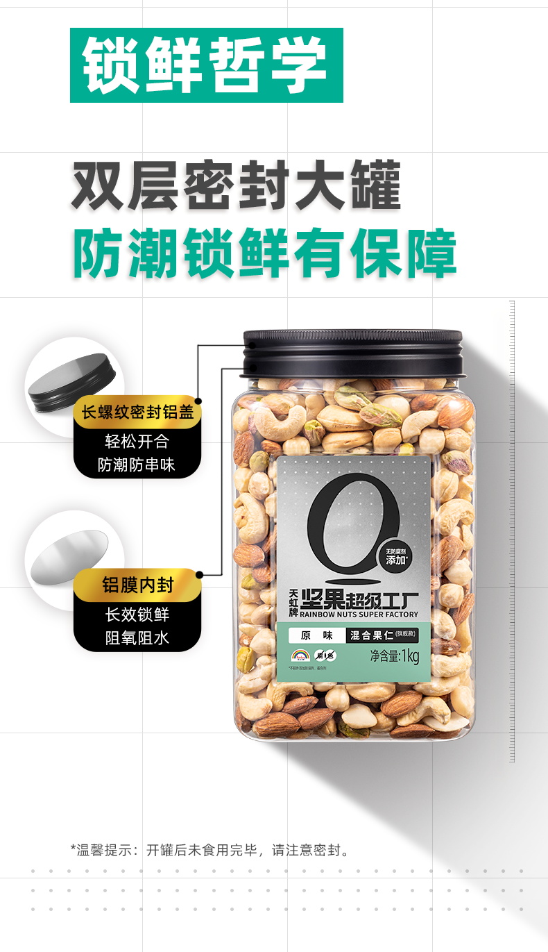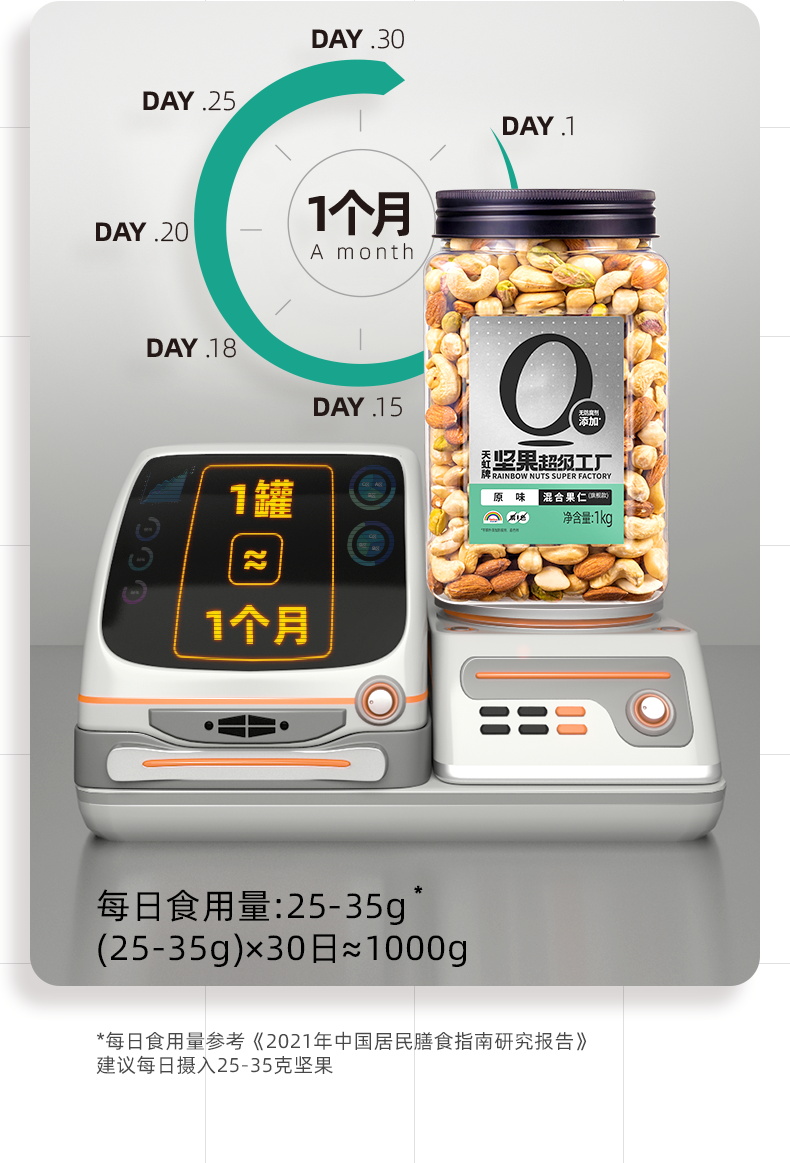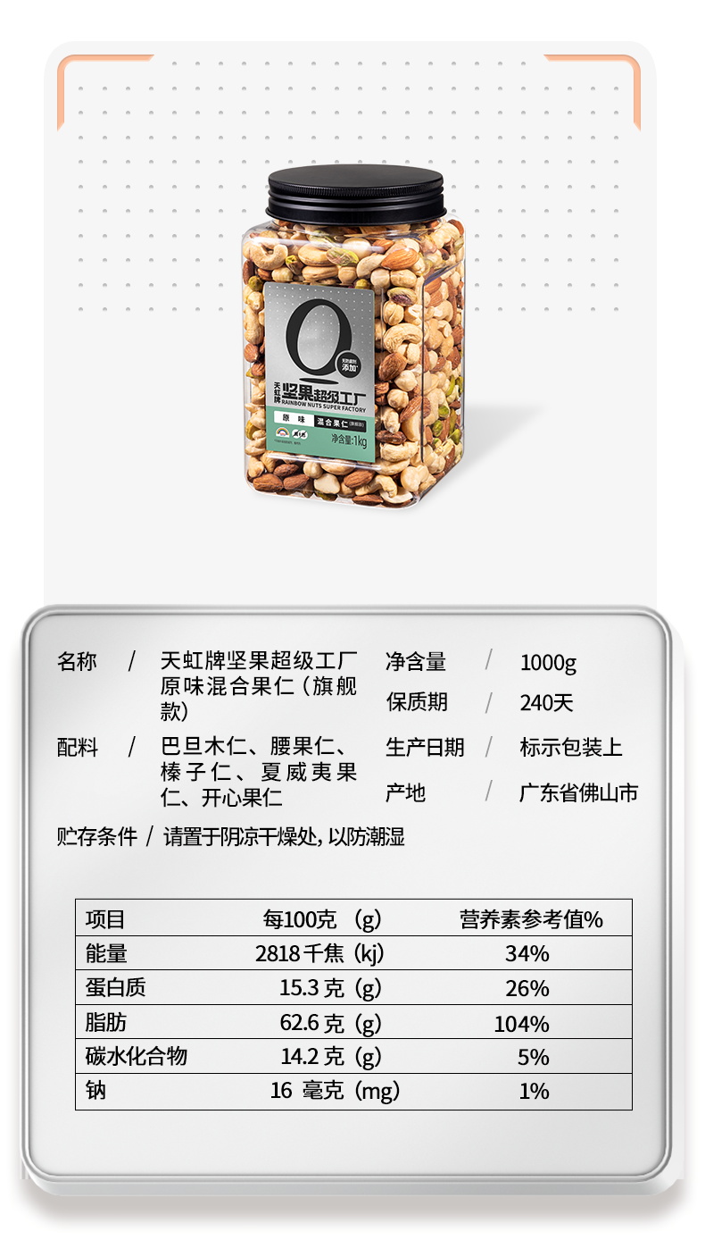 天猫天虹牌食品旗舰店169.9元,可领40元优惠券,实付129.9元到手,规格1000g大罐装,送7包25g每日坚果