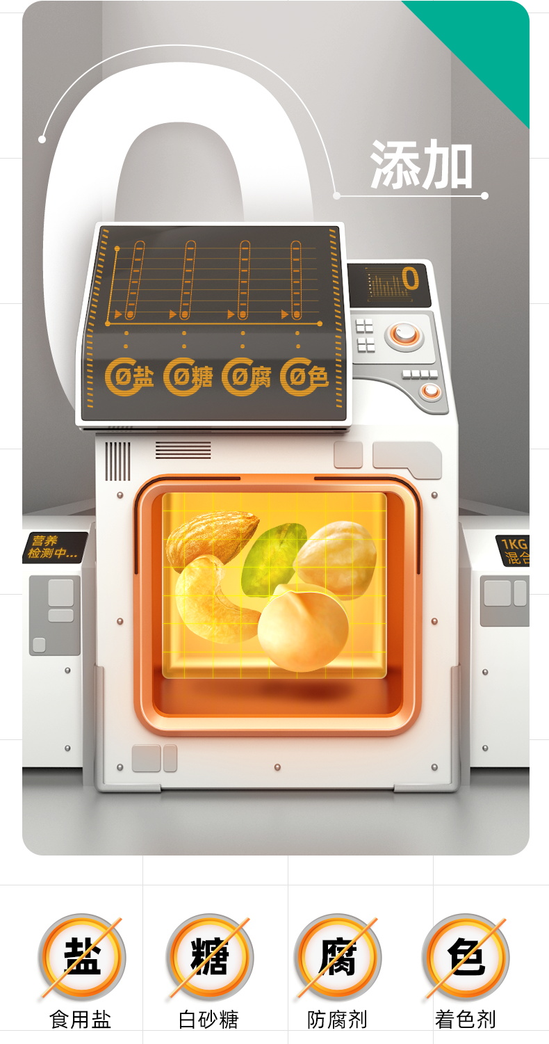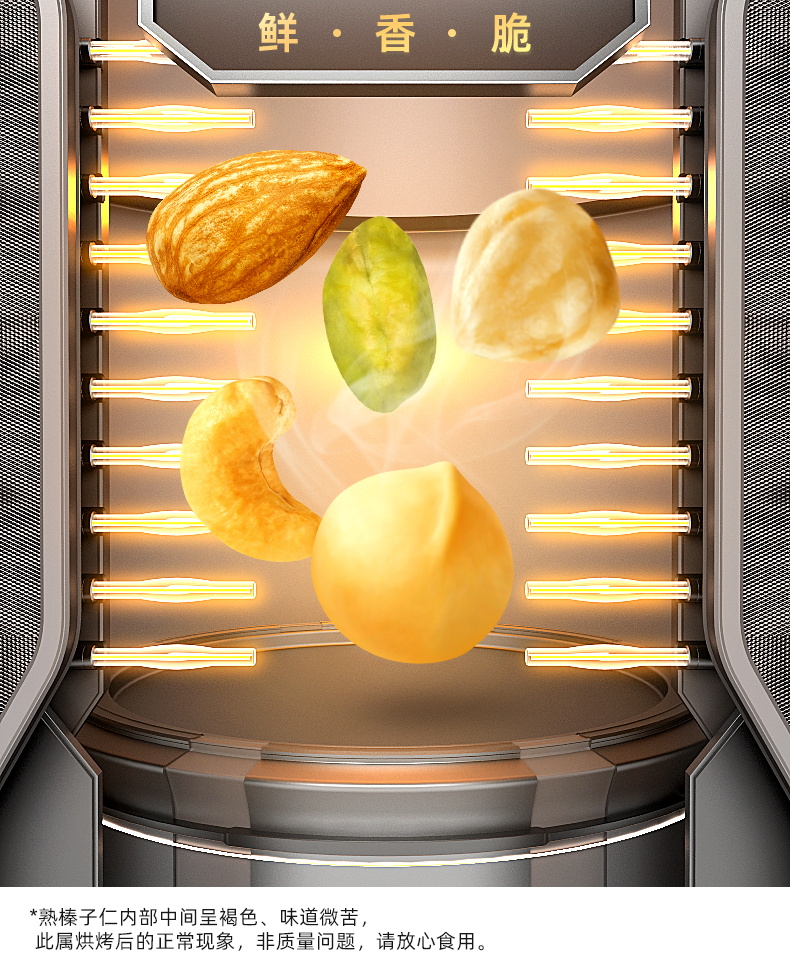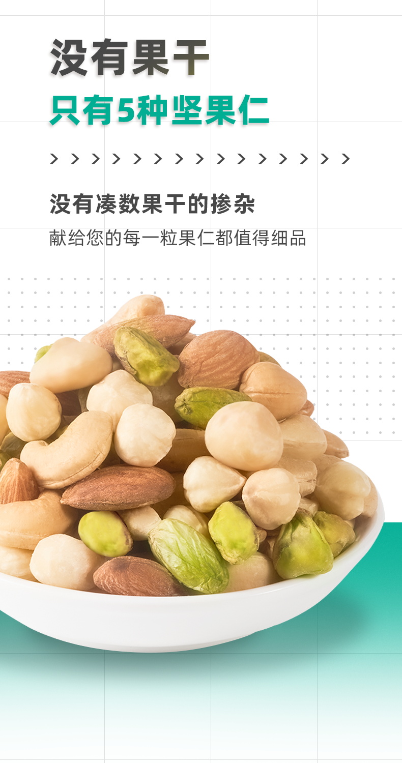 五种混合坚果包含:美国超级1号巴旦木、越南W240腰果仁、美国超级1号开心果仁、澳洲夏威夷果仁、土耳其脱衣榛子仁。