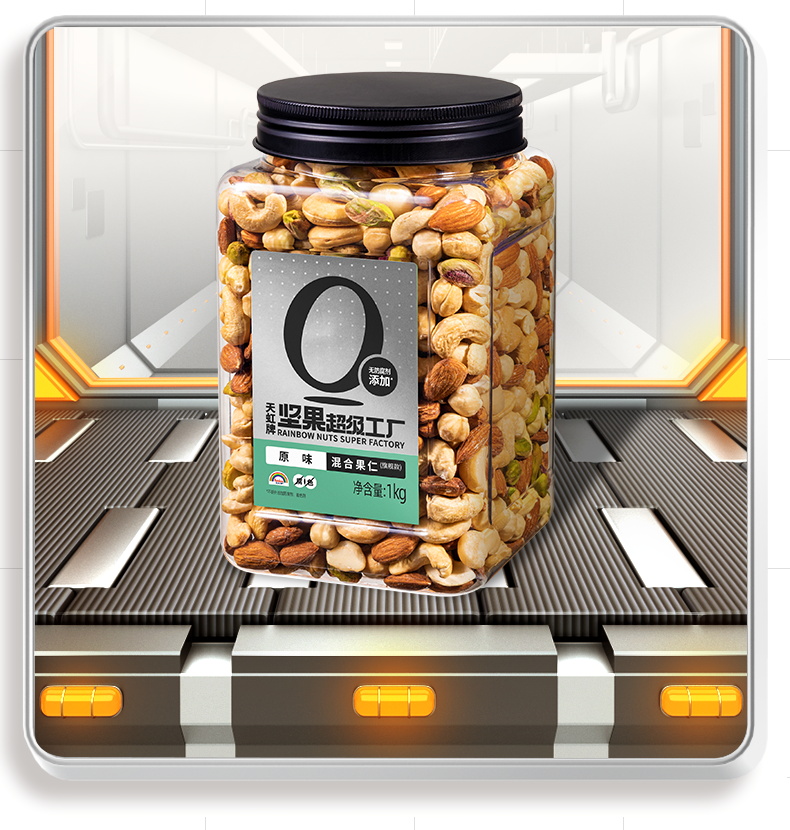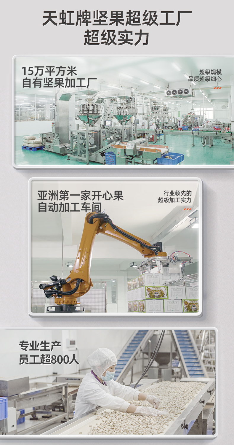 天虹是佛山南兴果仁制品有限公司旗下品牌,最早可追溯于1958年,南兴果仁是一家中外合资企业,年产10万多吨,是我国珠三角地区非常有名的坚果企业。