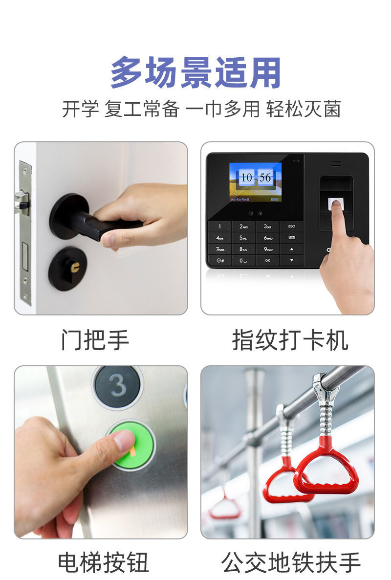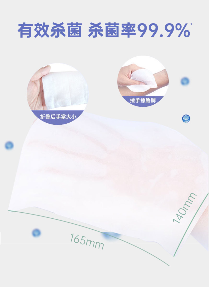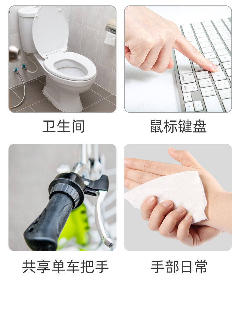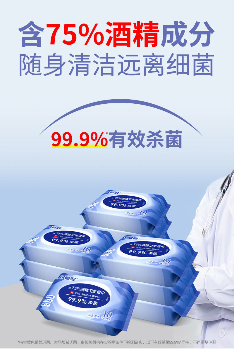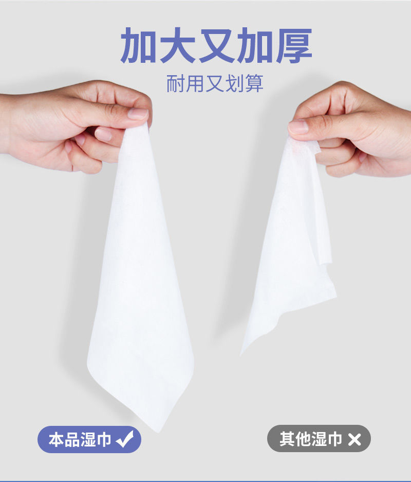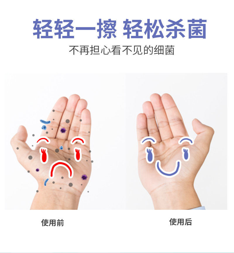 消字号认证,含75%酒精成分,有效杀灭细菌!水刺无纺布巾身,柔软亲肤,不掉絮不易破!日常外出暴露接触的地方,可以用它擦拭消毒更放心!