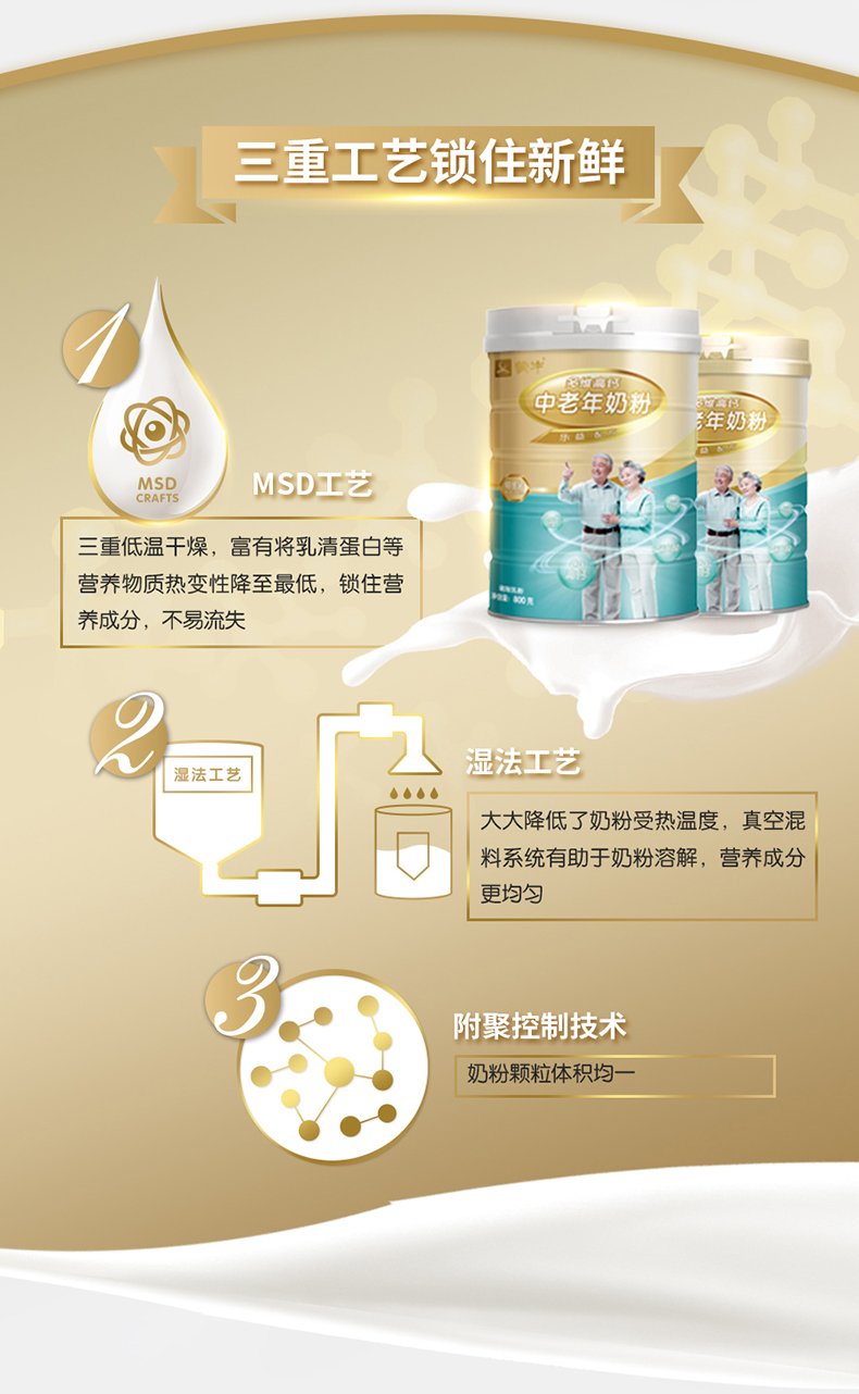 这款蒙牛 铂金 中老年高钙配方奶粉,是专门为中老年人群设计,根据中国人的身体需求设计,将依据低聚木糖IXOS1、乳双歧杆菌、钙等营养成分科学配比而成。奶粉采用湿法工艺,奶粉易溶解,营养成分均匀;附聚控制技术,奶粉颗粒均匀,蛋白质复原性好,易吸收。领券链接点此
