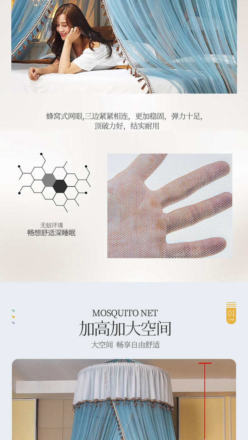 天猫帛罗旺斯旗舰店169元,可领50元优惠券,实付119元到手,公主风吊顶蚊帐,质检品质认证,白天收拢不站空间,晚上打开贴心防蚊,快速安装,加密网纱,加大空间,360°防蚊,精美细节,好蚊帐一觉到天亮【赠运费险】