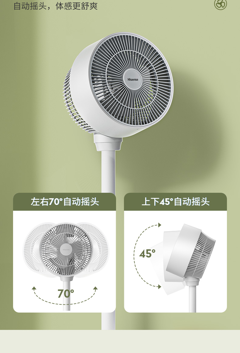 天猫hisense海信基米专卖店149元,可领50元优惠券,实付99元到手,海信40w空气循环扇,省电又舒适,可上下手动90°,左右90°广角摇头送风,3档风速可调,6米远距离送风,出风细腻柔和如沐春风,安享恬静睡眠,可搭配空调平衡循环整屋空气。
