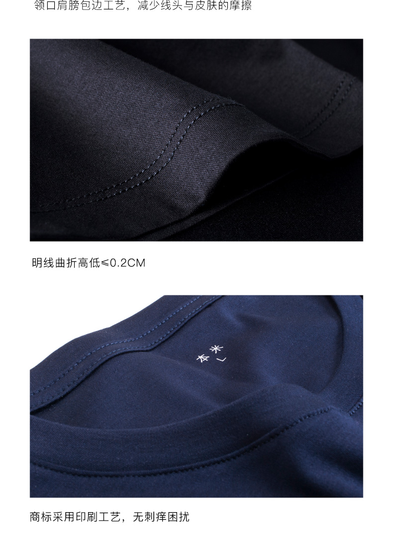 就档次来说,丝光棉比平常棉质面料好,虽不如桑蚕丝面料,但比蚕丝面料好打理,多用在夏天制作高档T恤衫、Polo衫。细节上,领口使用弹力纤维织就,弹性好不易变形,长期穿着拉扯也不会松垮,领口、肩膀细致包边,减少线头与皮肤摩擦,商标印标,无刺痒困扰,处理的非常用心。