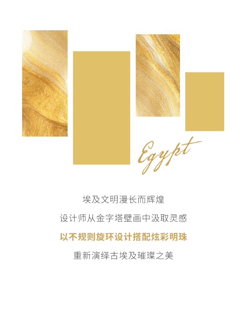 埃及遗珠系列 珍珠项链、戒指、耳钉可选。大牌设计异域风情,温润珍珠夺目魅力。设计师在埃及壁画中吸取灵感,充满浓郁异域风情,以不规则旋环设计,搭配绚丽珍珠,自带晕彩效应,温润夺目,满嵌锆石点缀,如耀眼星辰洒落。重新演绎古埃及璀璨之美。