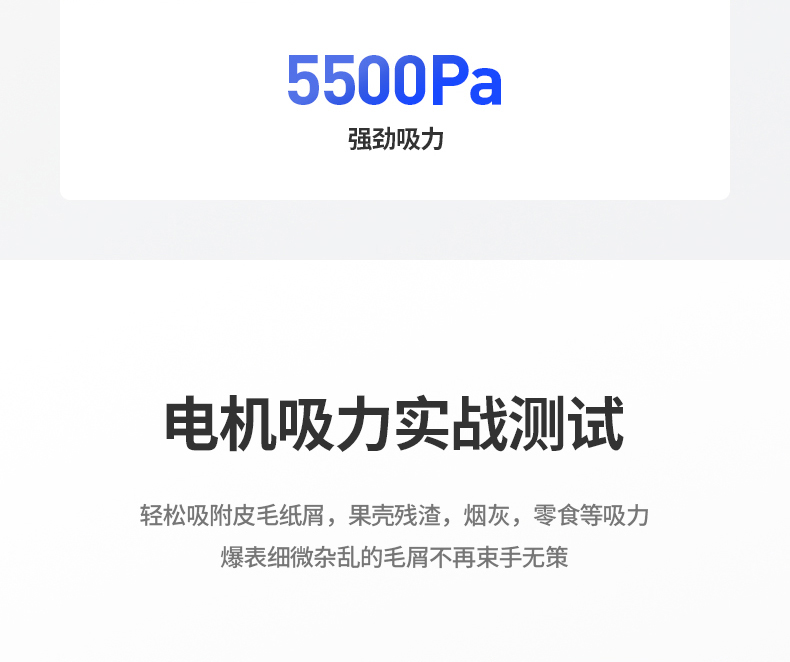 采用杯底底座设计,直立充电,收纳方便,随处可放不占地方,在车里使用的话车座后的置物兜、车门上的储物格都可以放下,要用的时候抬手就能拿到。采用扁吸、毛刷伸缩二合一的设计,伸缩吸嘴随意切换可以轻松应对不同情况,操作十分简便。在沙发缝、门缝、键盘等小缝隙时用扁嘴刷,毛刷则可以轻松清除顽固污渍,设计贴心。