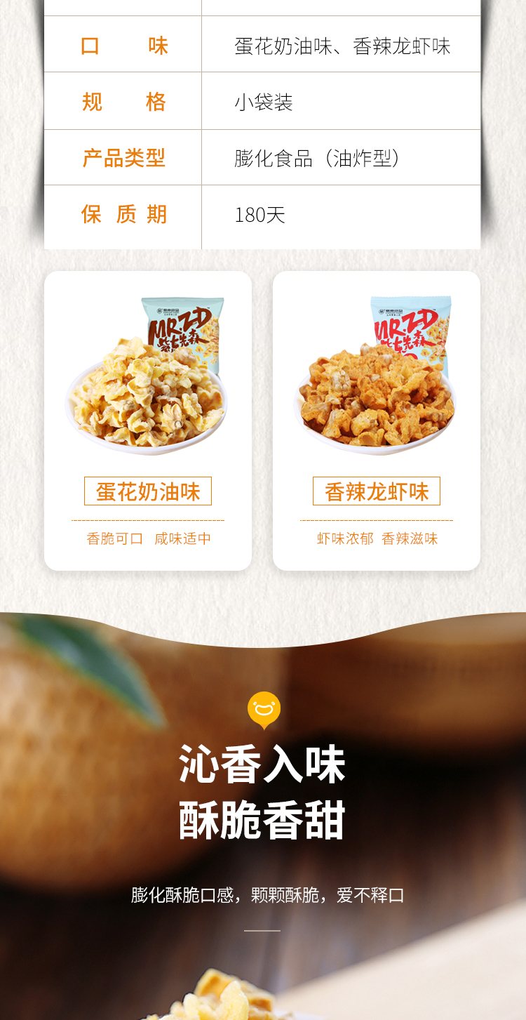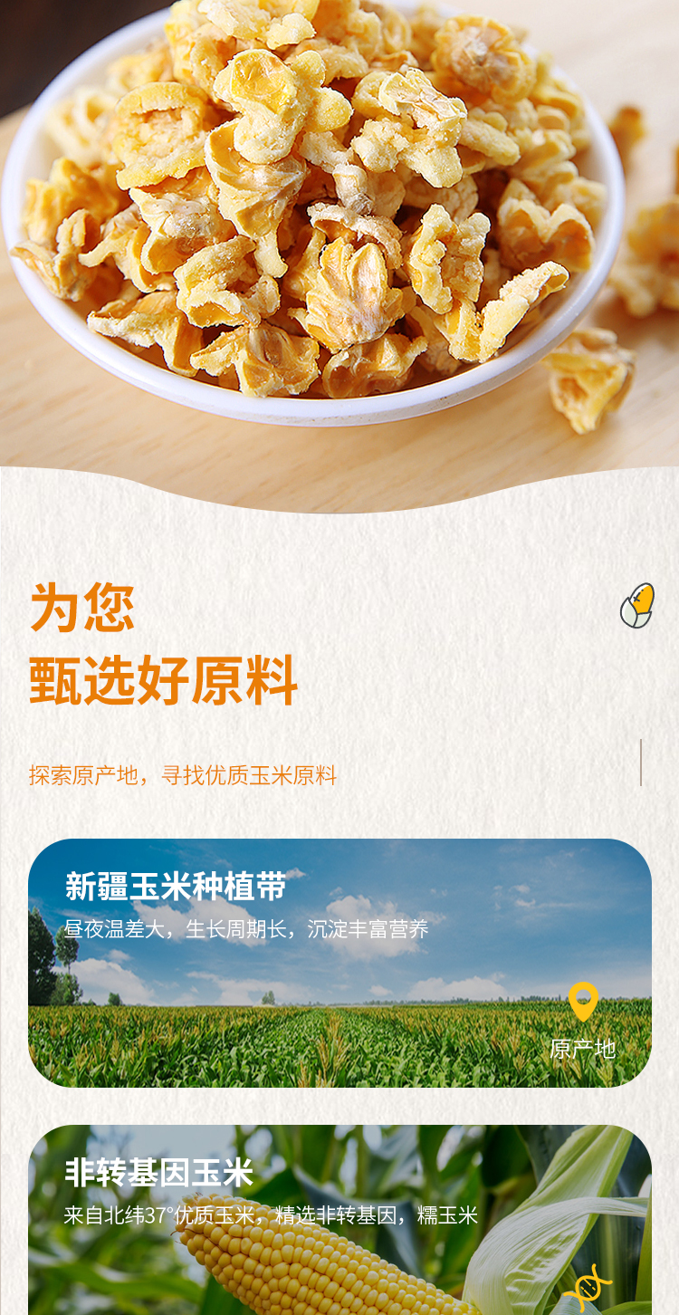 这款紫东食品 蛋花奶油味 黄金玉米爆米花 ,使用新疆产的玉米,颗颗绽放,酥脆可口,蛋花工艺,保留玉米香醇口感,小袋包装,方便分享。