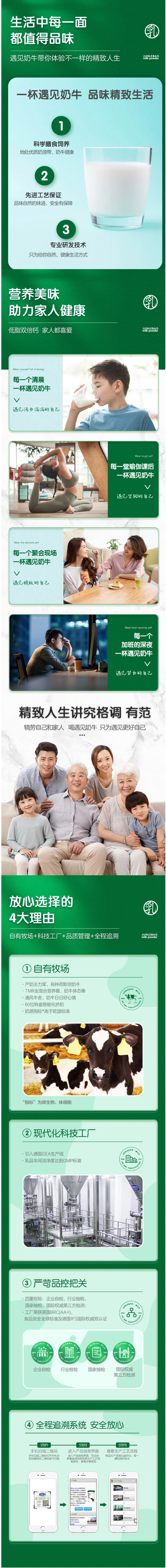 君乐宝遇见奶牛高钙低脂营养牛奶粉300g*2袋