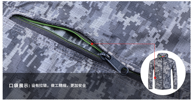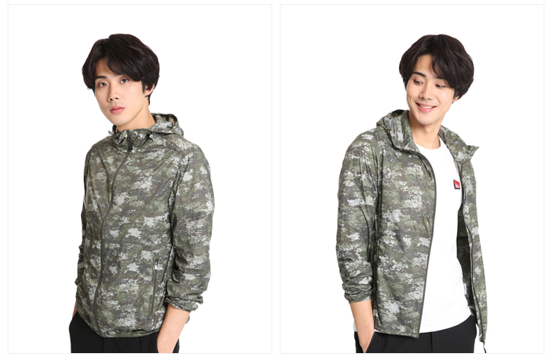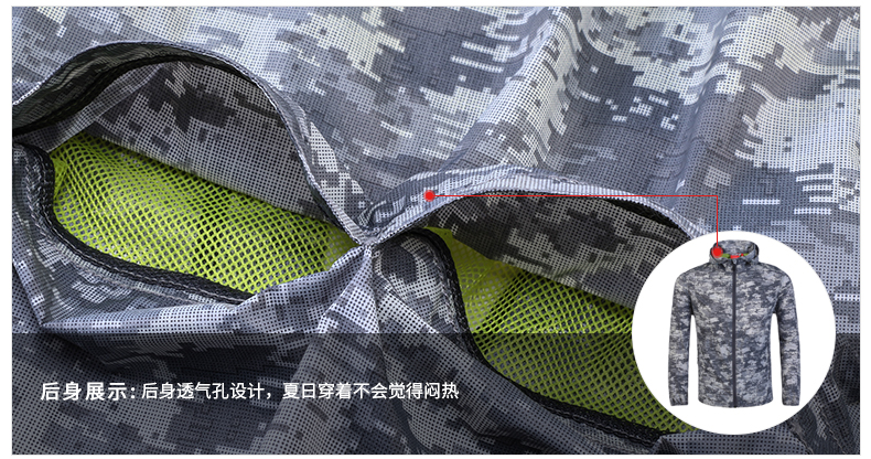 这款皮肤风衣使用100%超细尼龙面料,强度好,防撕裂,重量轻,防风、抗污,迷彩纹印花,非常帅气,适合男生穿。