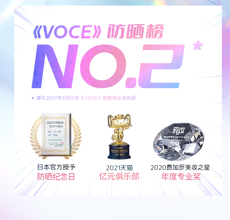 日本最高倍数防晒数值,SPF50+ PA++++ SPF,有效阻隔SVB、PA、UVA,蕴含:石榴籽提取精华、蜂皇浆提取精华、维生素C衍生物、玻尿酸、神经酰胺、维他命E、lipidure、可溶性胶原,等4大美白因子,6大保湿成分,还特别添加了绿茶精华+吸汗粉末。可长时间抑制汗液、保持干爽。