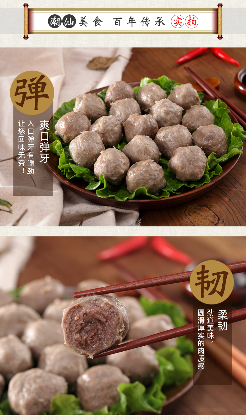 喜得佳 正宗潮汕 手打实心牛肉/牛筋丸,获得了香港Q唛认证,品质安全有保证。选用自然放养黄牛的新鲜后腿肉,纯手工捶打成酱,肉质细腻鲜嫩,Q弹多汁,爽口弹牙,能当乒乓球打,弹性非常之好(跟电影《食神》中的爆浆撒尿牛丸相似),不含硼砂、弹力素、防腐剂,口感筋道,爽口又弹牙。