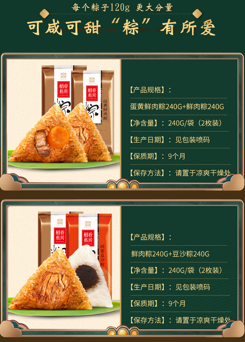 天猫稻香村食品旗舰店19.87元,下单立减3.97元,可领6元优惠券,实付9.9元到手,4粽4味 新鲜日期。包含:蛋黄鲜肉粽120g*1、经典鲜肉粽120g*1、润香豆沙粽120g*1、蜜枣粽120g*1。