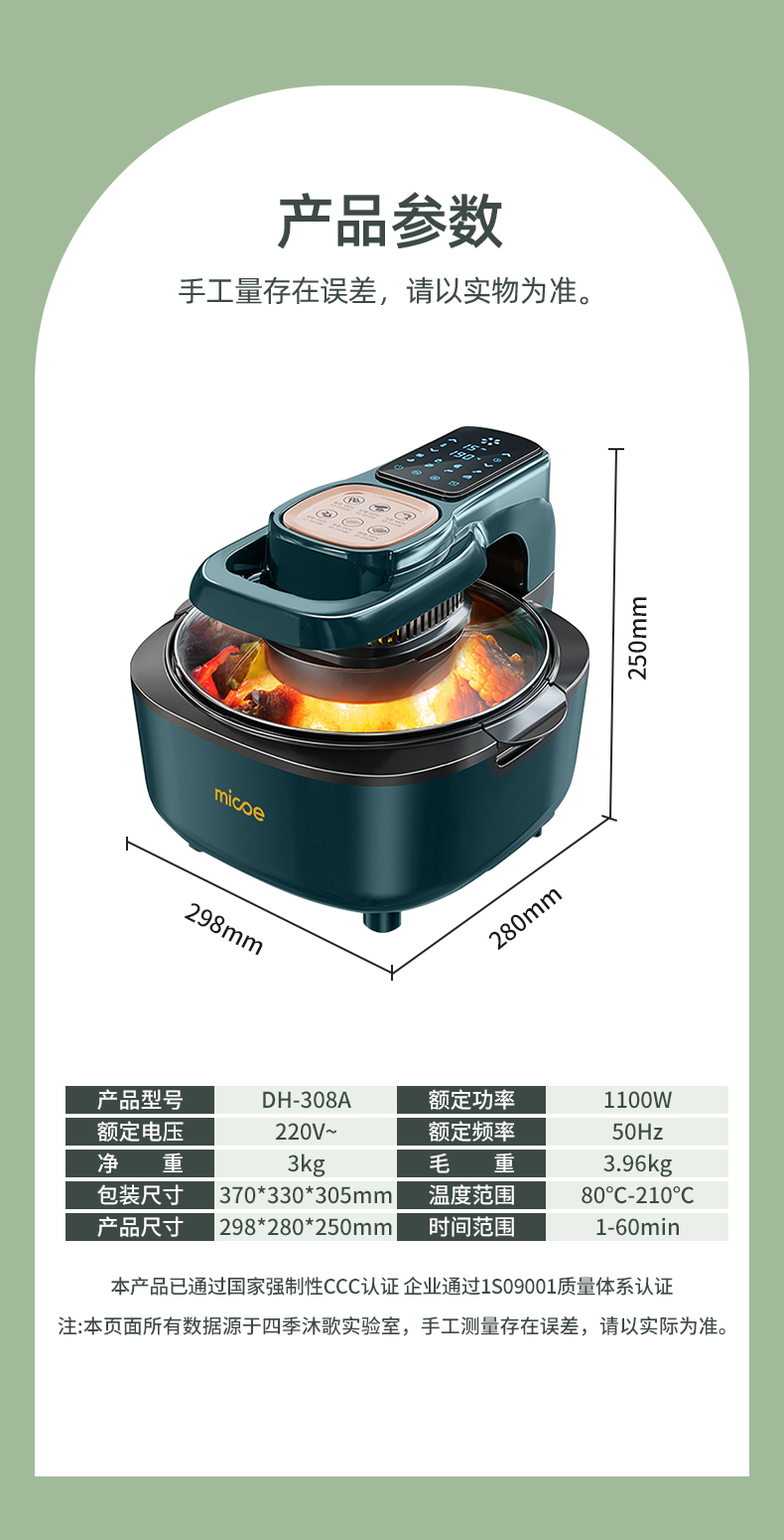 天猫四季沐歌花非尔专卖店339元,可领140元优惠券,实付199元到手,5升豪华大容量,无油煎炸、烘焙、烧烤等,微电脑触控,8大预设菜单功能齐全,钢化玻璃的锅盖,270°环绕可视窗口,能够时刻看到食材的烹饪程度,更好的掌握火候。