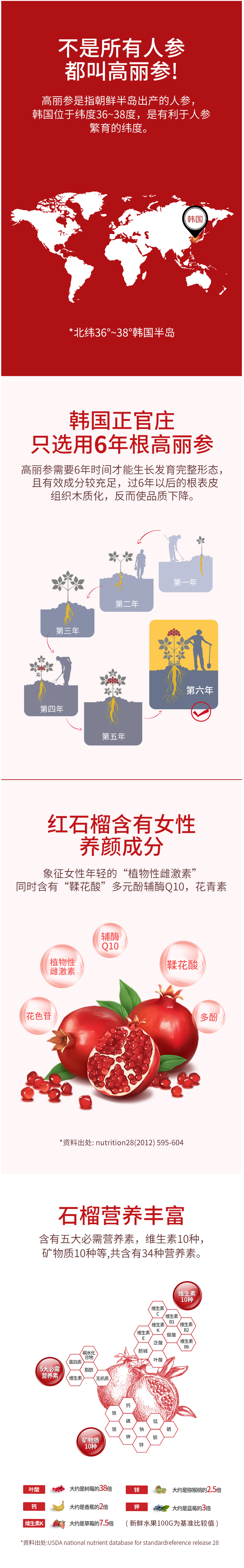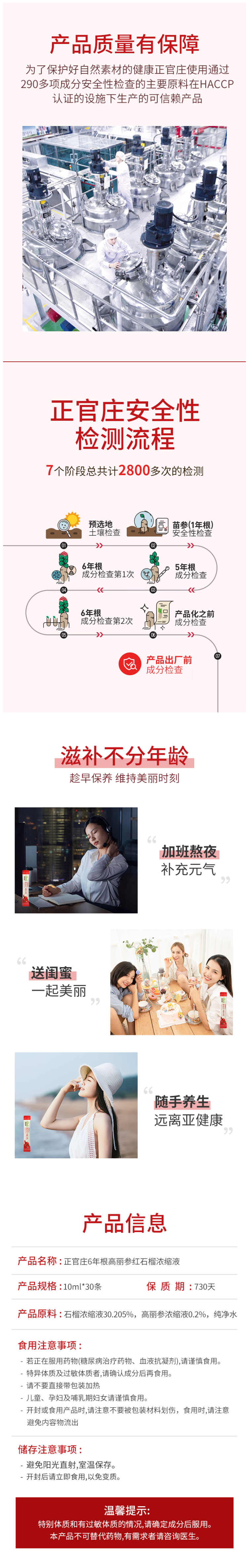 红参:采用采用6年根高丽根高丽人参,富含32种皂苷,采用超微细粉末技术及发酵红参制造技术,强化皂苷含量、提高吸收率,有助于增强血液循环,改善疲劳,增强免疫力。