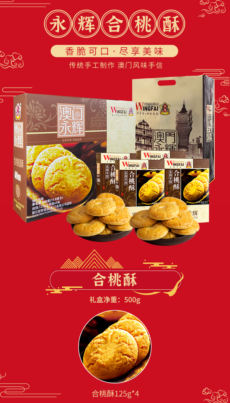 这款澳门永辉 合桃酥,30年专注手工制作,优选原产地原料,古法秘制,酥脆可口,香醇美味,蛋香浓郁,回味无穷,多重检测的质量,美味又放心。