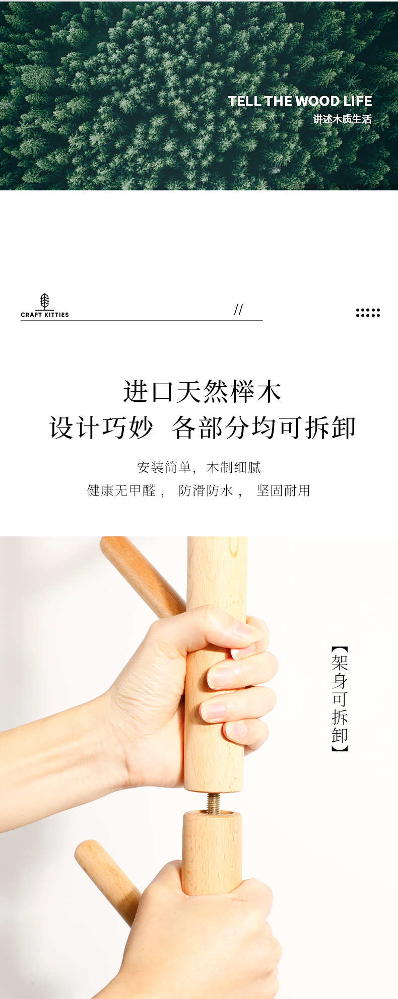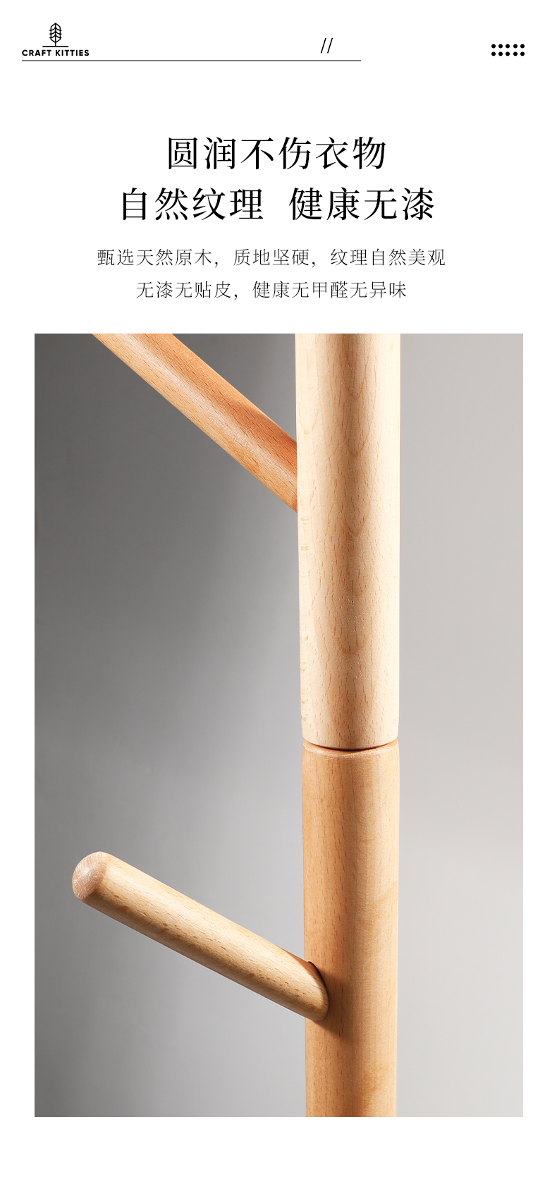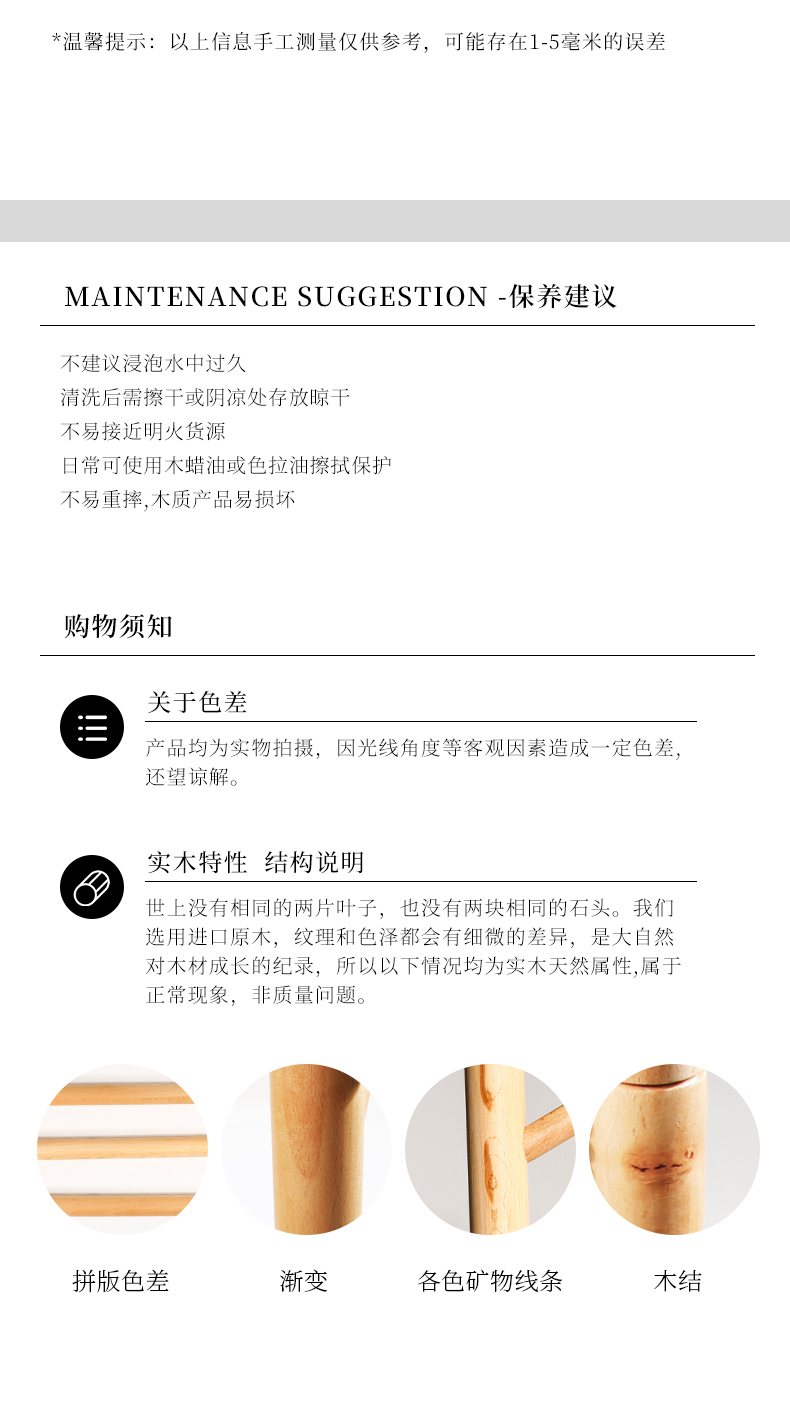 整体采用进口榉木制作,纹理自然美观,质地坚硬,无漆无贴皮,坚固耐用光滑不拉丝,健康无甲醛、无异味、防滑防水,设计巧妙,各个部分均可拆卸,适用于门厅,卧室,办公室等,简约时尚不占地方。