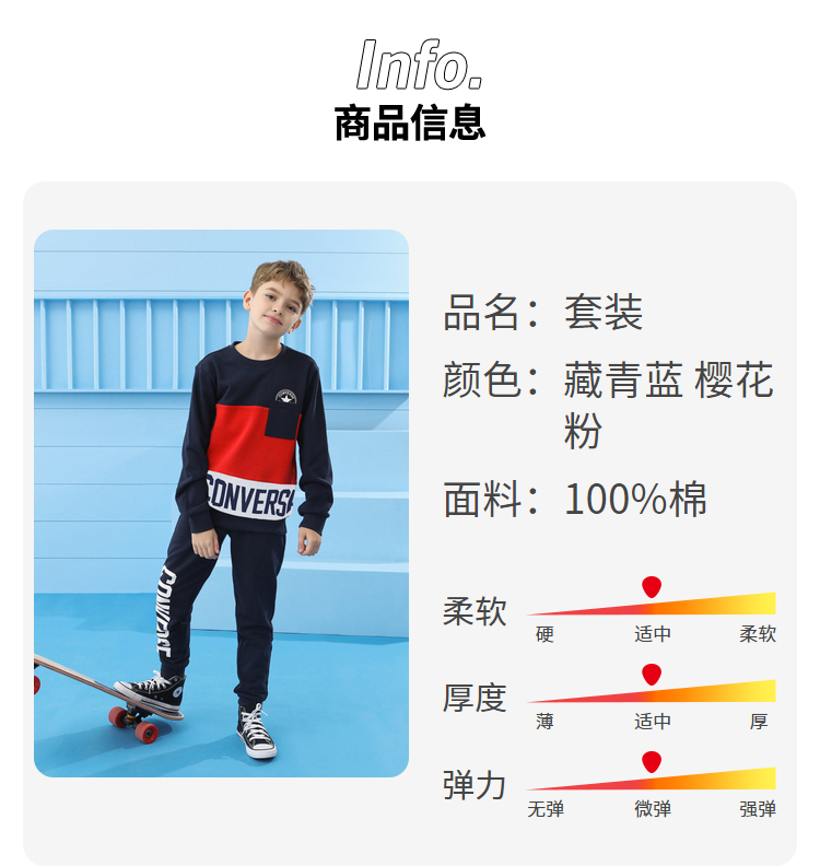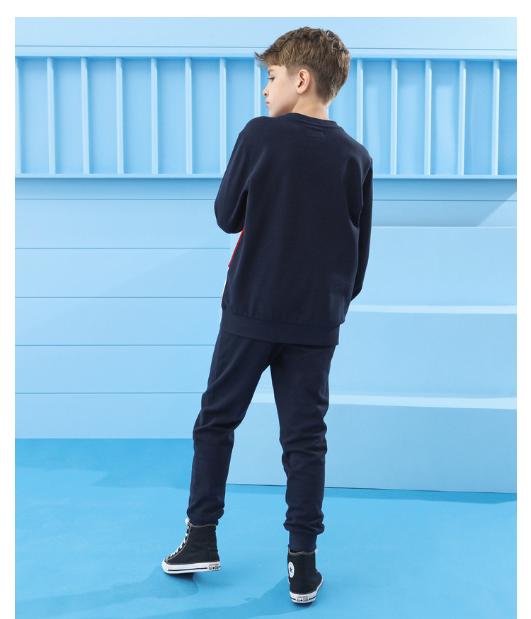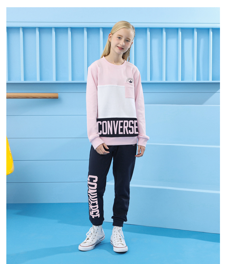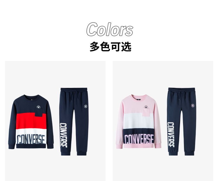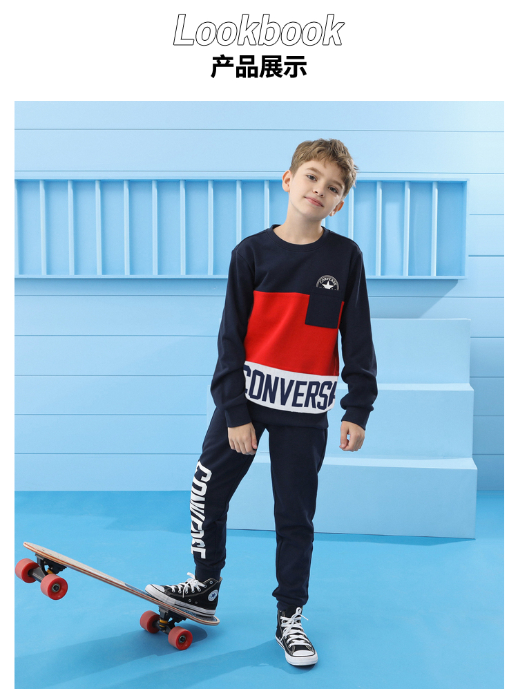 男女童 春季新款 适合110-165cm,100%纯棉材质,针织透气舒适,时尚拼色设计,搭配超大英文logo点缀,彰显个性,日常休闲、运动都可穿。