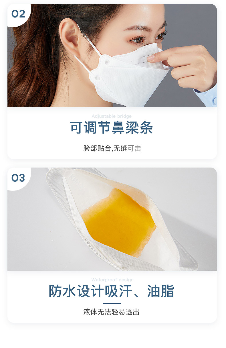 升级4D立体设计,贴合面部轮廓,留给口鼻更大的,呼吸空间呼吸顺畅,不闷气。4层防含双层熔喷布,多层守护,独立包装更卫生,通过权威检测机构认证,认真把控每一项细节,为您的安全保驾护航!