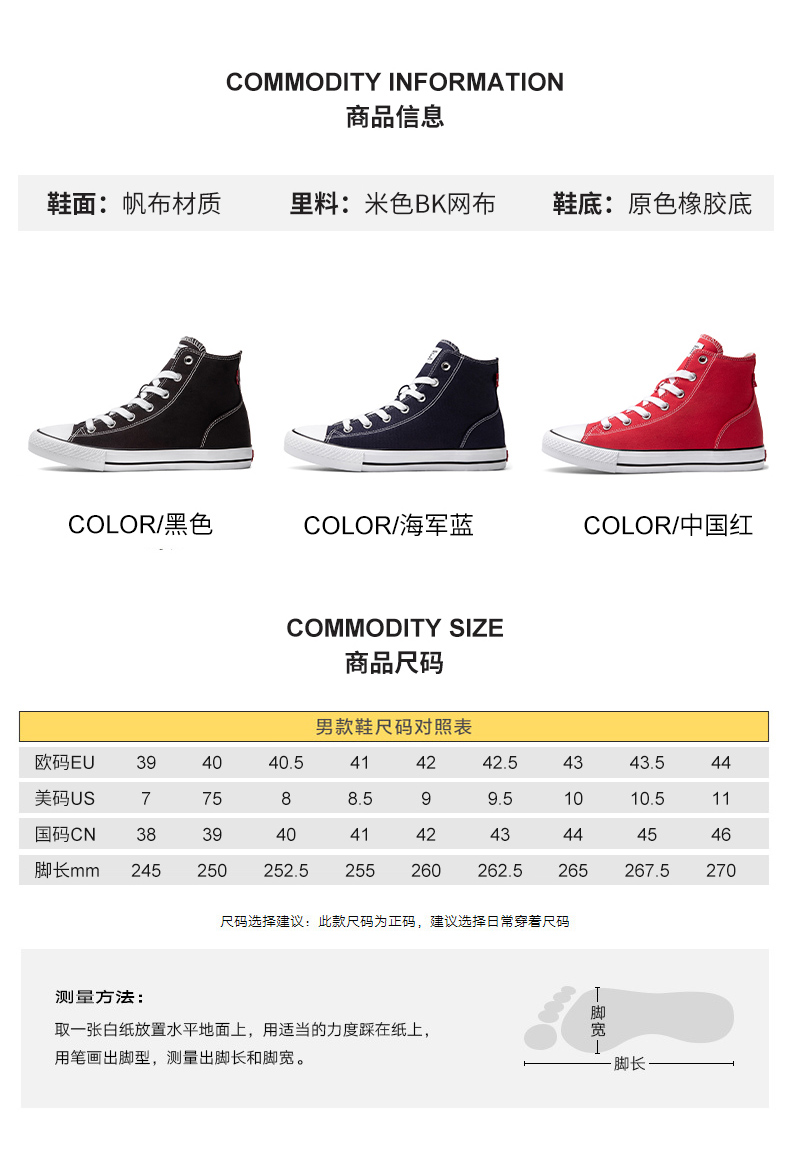鞋面是选用优质高质量棉质帆布制成,纹理清晰,具有张力透气性也好,米色BK网布衬里,原色橡胶底,柔软舒适,弹性充盈,更有抓地力。