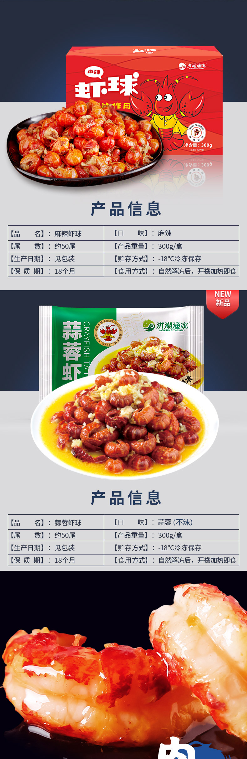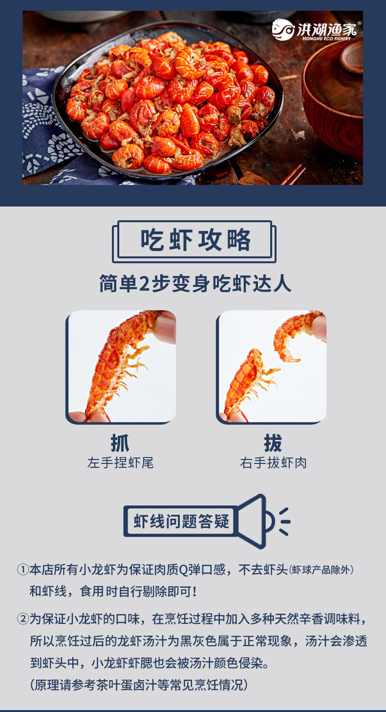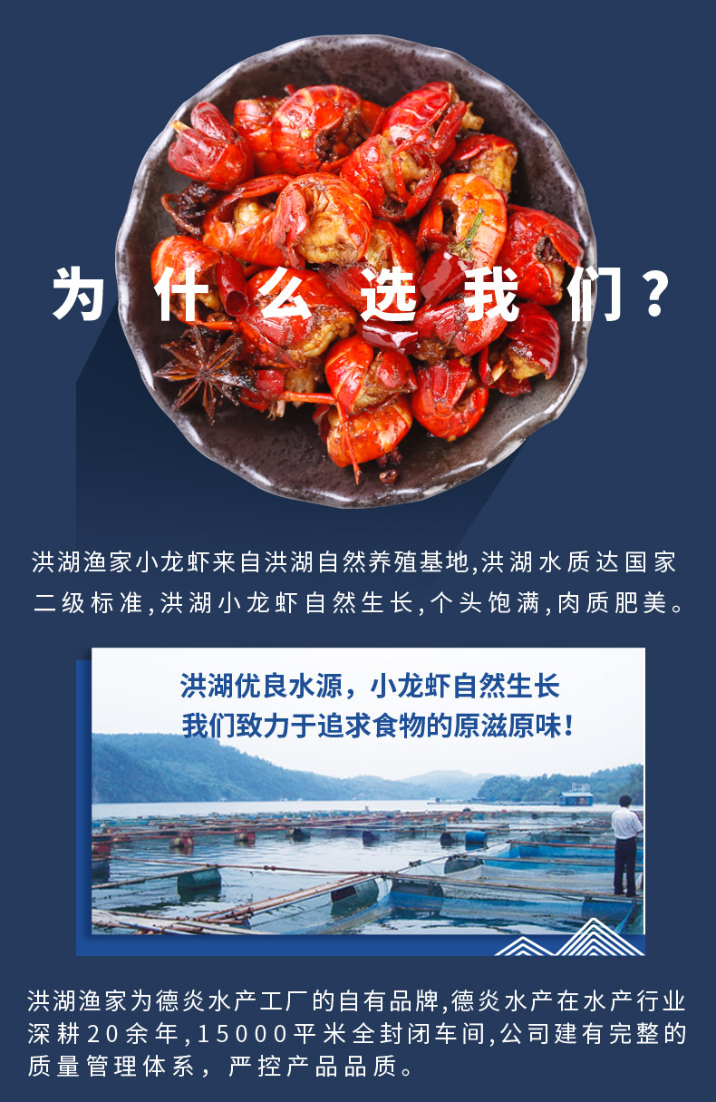 洪湖渔家为德炎水产工厂的自有品牌,德炎水产在水产行业深耕20余年,15000平米全封闭车间,公司建有完整的质量管理体系,严控产品,品质有保障。这款龙虾球,一盒40-50尾,活虾烧制,超级实在。壳薄肉嫩,虾肉Q弹,新鲜饱满,加热即食,美味无需等待!