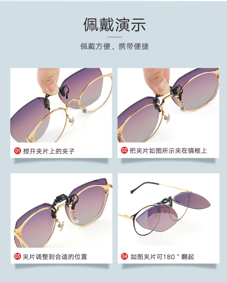 这款One&One近视专用偏光墨镜夹片,近视驾驶专用,5克超轻,戴上脸后无压力。升级金属合金架子,强度更好更牢固。