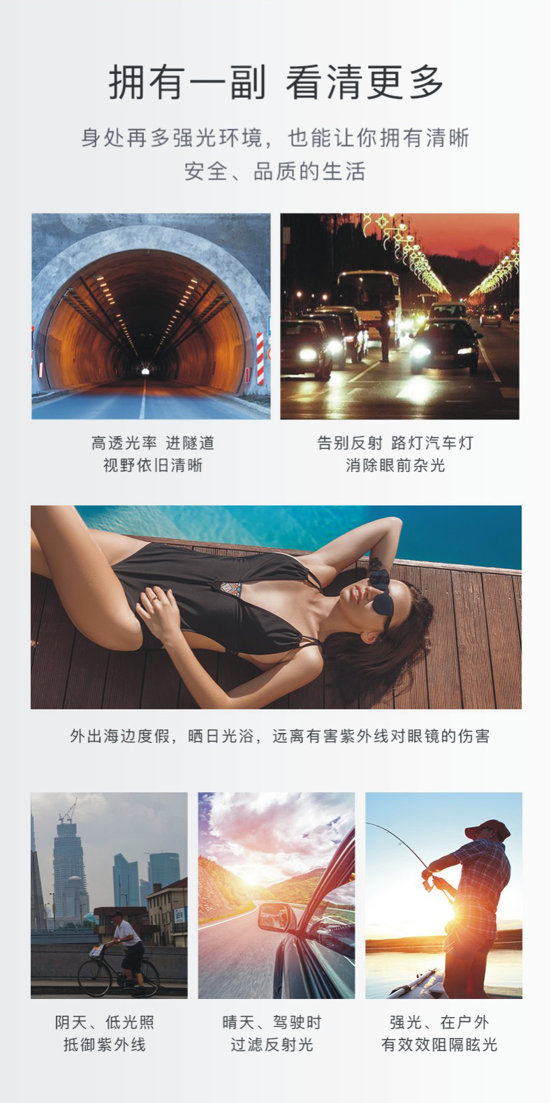 高清TAC偏光镜片,坚实耐用,能阻挡眩光、防紫外线,外层是増镀防油污涂层,无惧手汗、油污,一擦即净。