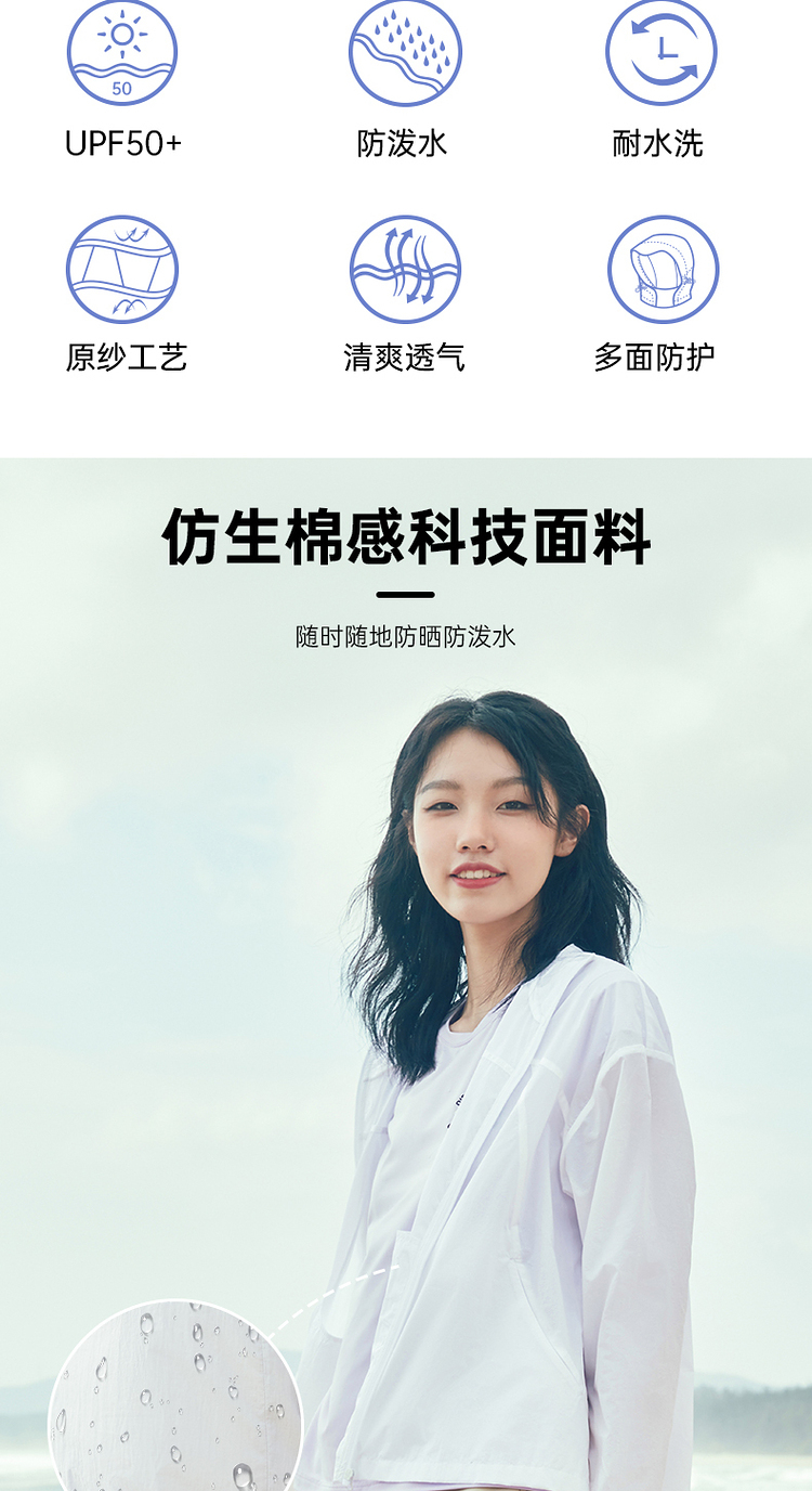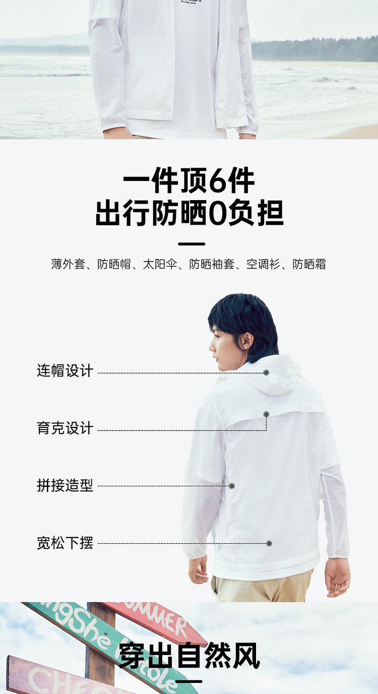 这款皮肤风衣,大身采用20D超细尼龙面料,轻薄防风,强度好抗撕裂,还拥有UPF50+的防紫外线能力。加入防泼水工艺,夏季去海边、去漂流都能派上用场。