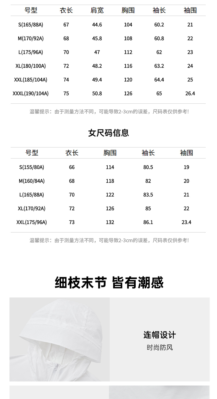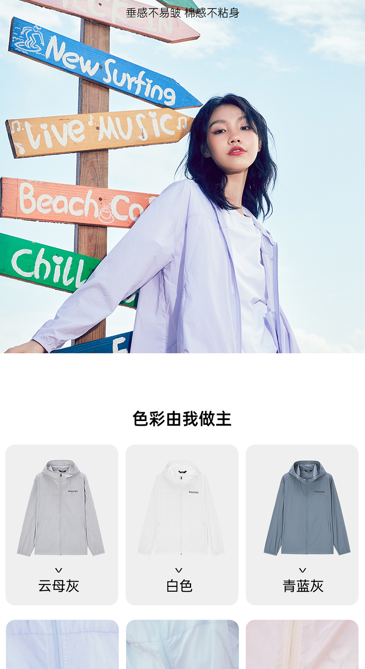 款式方面是3D立体剪裁,帽子带有大帽檐、夏季防风防晒,袖口和下摆都有松紧弹力包边,贴合舒适,配色更自然清新,百搭时尚。