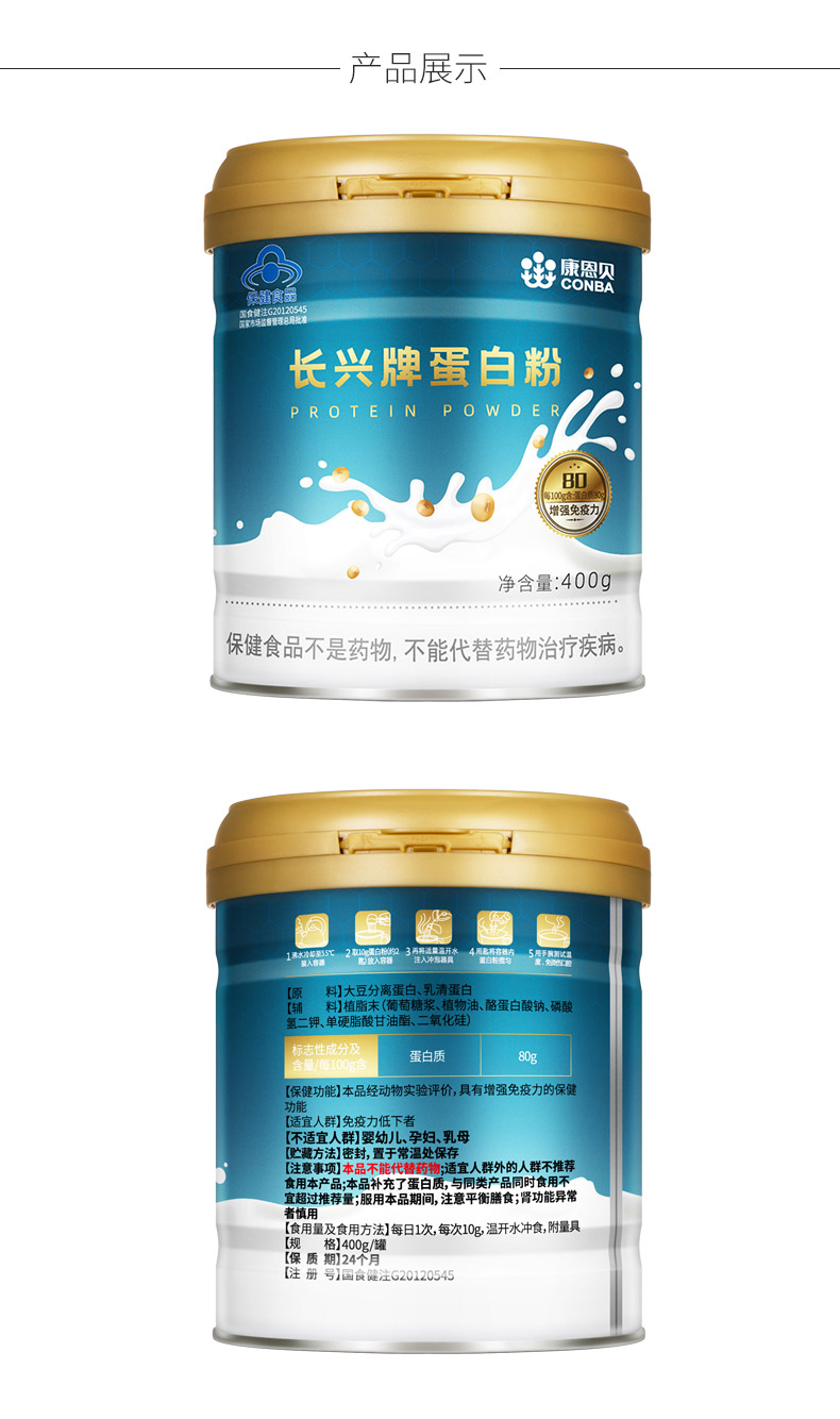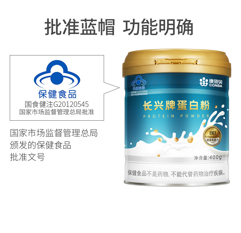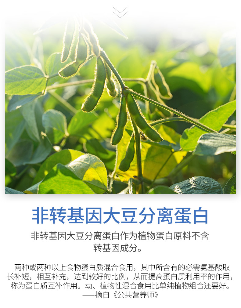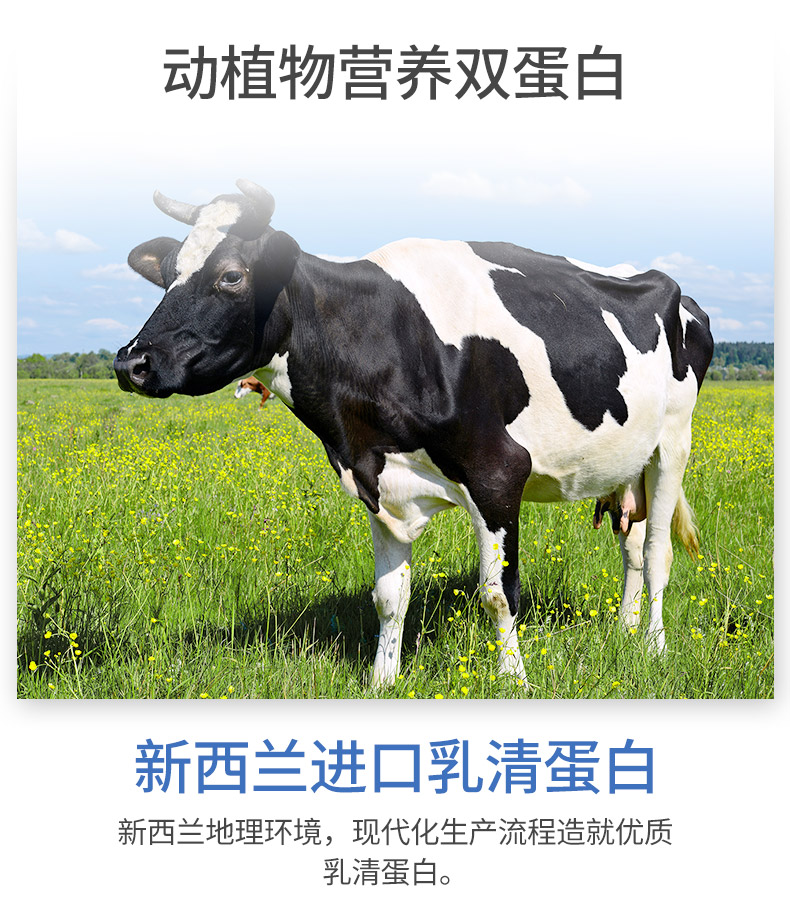 国家食品药品监督管理局蓝帽认证,采用新西兰进口乳清蛋白+非转基因大豆分离蛋白,双蛋白配方科学比例,运用分离技术和现代实验技术,在浓缩天然蛋白的同时大幅度降低了总胆固醇、饱和脂肪及碳水化合物含量,人体更易吸收,助量营养,提高免疫力。