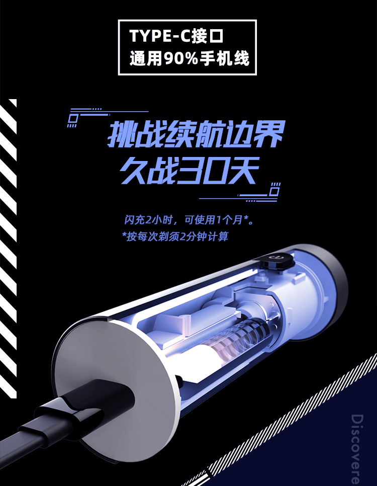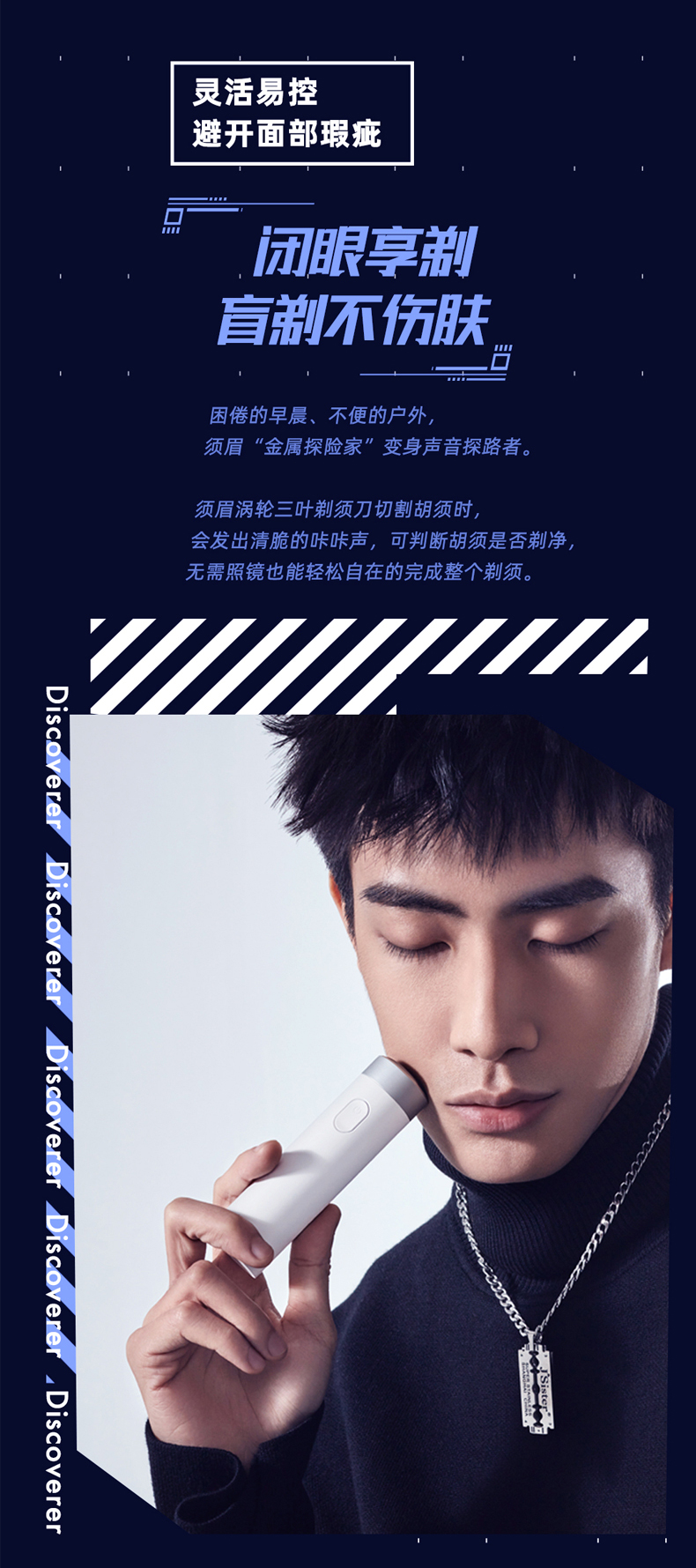 小品生态链须眉出品,剃须刀,32mm直径刀头,外型有点像大号的口红,简洁质感,符合小米一贯的风格,体积小巧,适合出差旅行携带。特色是刀网的涡轮结构,0.09mm厚度,亲肤贴合,925个孔洞以回旋形式逐渐增大,剃须没有死角,同时避免拉扯、卡顿现象。