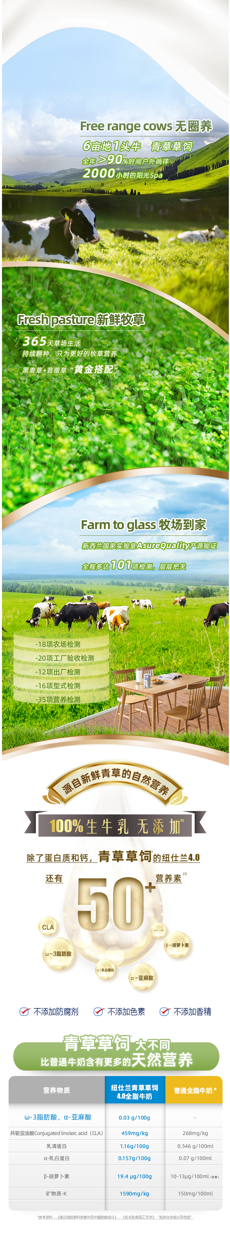 在生产过程中不添加防腐剂、香精、色素等,每100ml牛奶中的蛋白质含量4.0g,高于欧盟标准和国内标准,牛奶清醇不油腻,营养又美味。