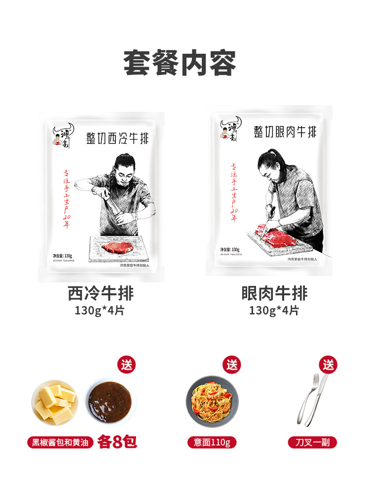 西冷:也称纽约客,主要是由上腰部的脊肉构成,基本上取自牛背脊一带的牛肉,肉的边沿稍微带一圈白色的肉筋,有韧性且嚼劲十足,可煎制7分熟甚至全熟。