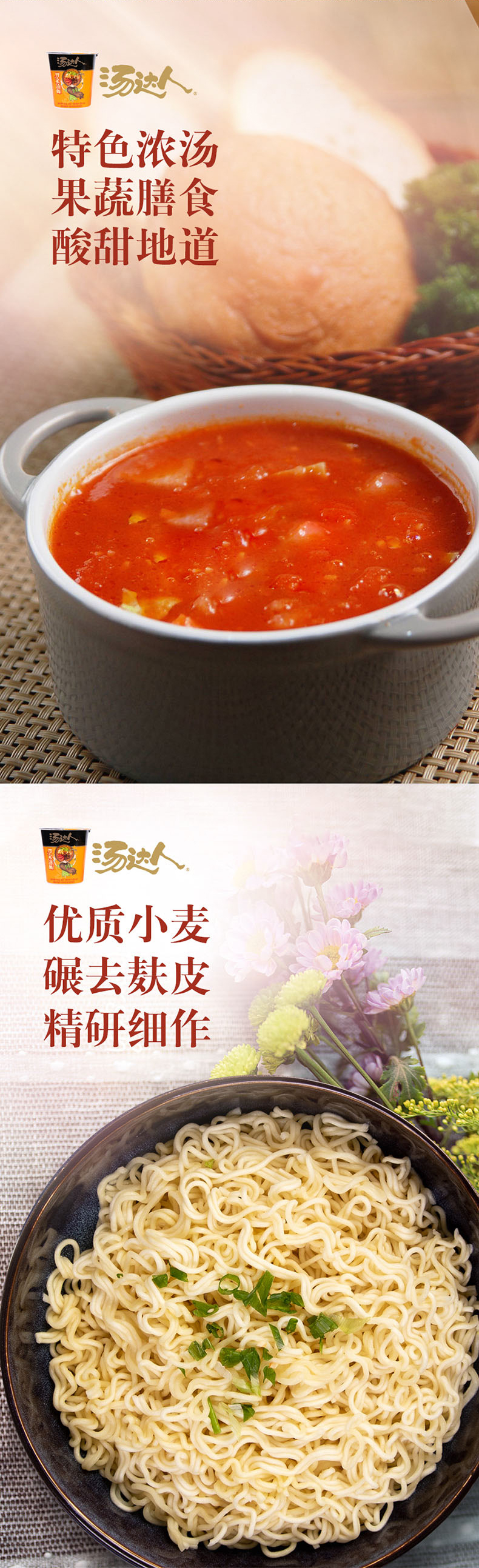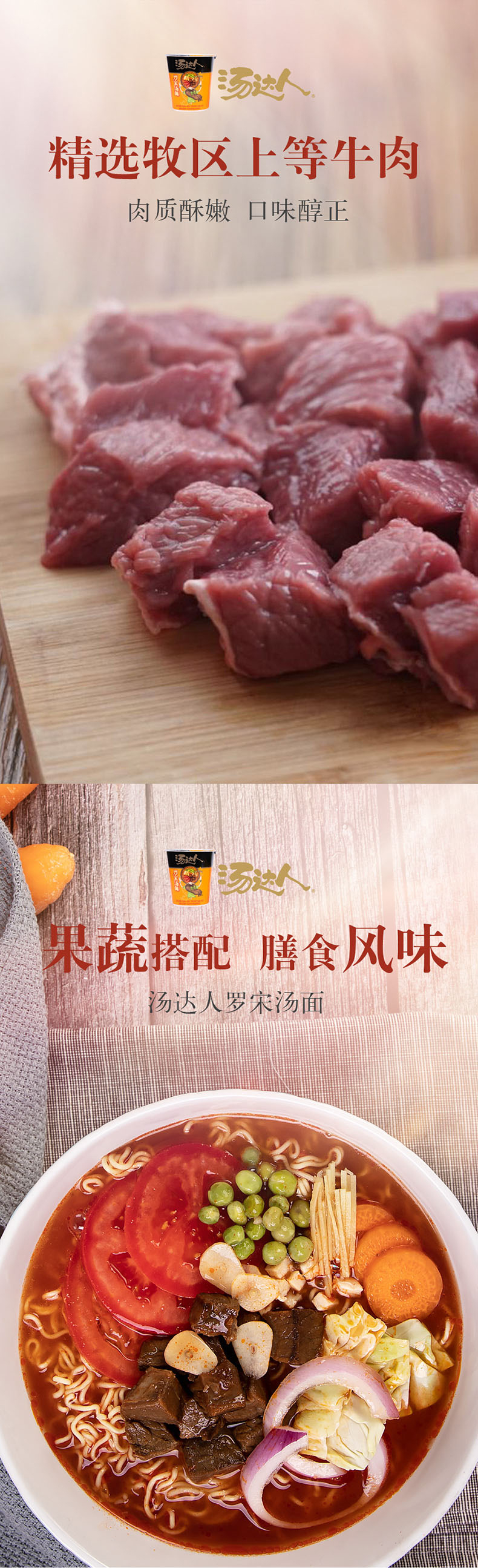 这款统一汤达人杯面,是罗宋汤味的拉面,选用优质小麦碾去麸皮精研细作成面,搭配特色浓汤,酸甜果蔬+番茄牛肉的组合,营养合理,百味于汤。