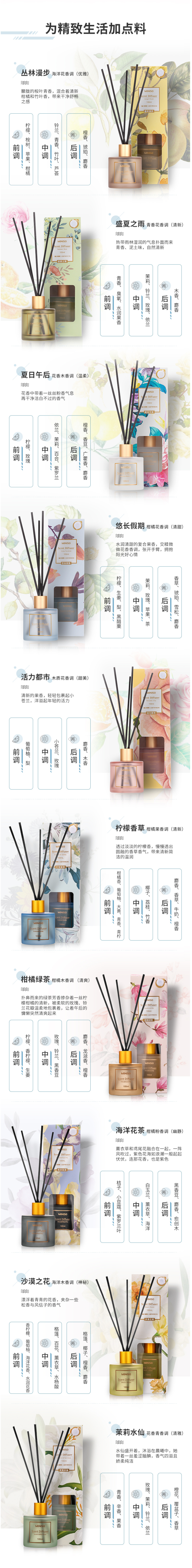 丛林漫步-清爽花香,盛夏之雨-清新花香,活力都市-淡雅果香,夏日午后-花香。