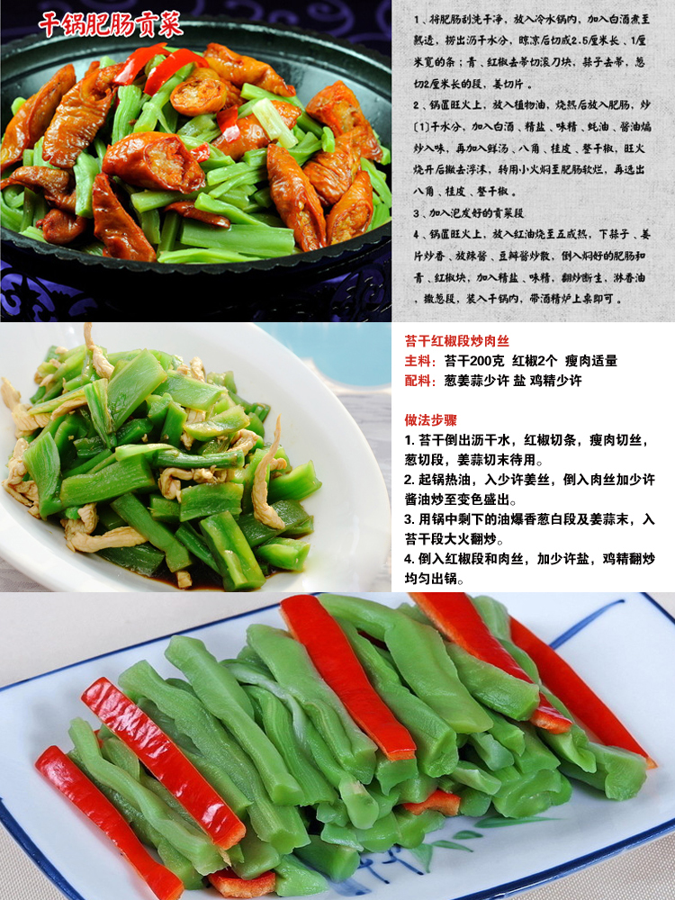 PS:到手后是已经脱水的贡菜,食用之前用水泡发即可,平常可以存放于冰箱中。