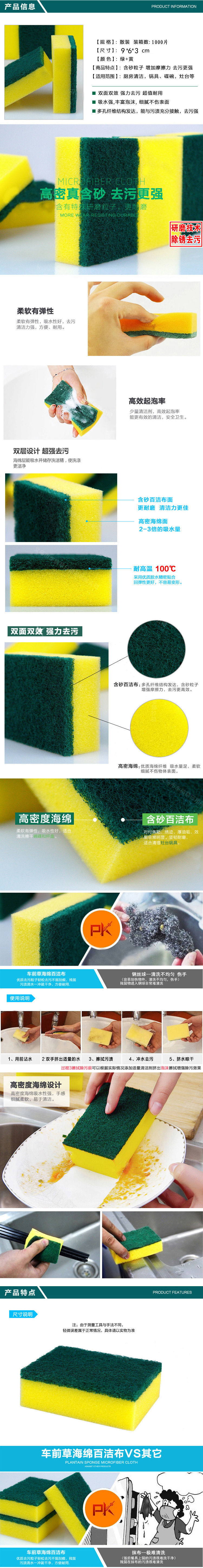 这款科林清高密度含砂海绵擦,双面均可使用,具有吸水性强、细腻不伤手、超强去油去污等清洁功能,绿色层面含有砂粒子,增加摩擦力,提高清洗效率。