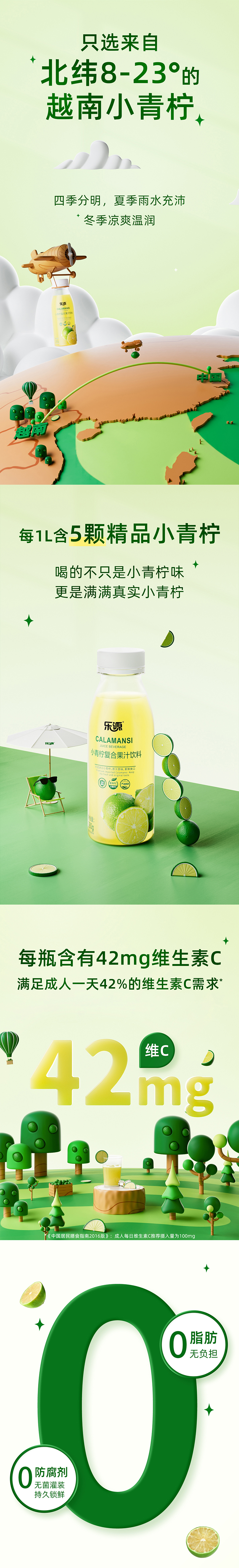 这款乐源 小青柠复合果汁饮料,新鲜采摘北纬8~23°的越南小青柠,充分萃取每一颗小青柠的清香和酸甜,还原手打鲜拧口感,果汁含量≥12%,入口3秒微酸,5秒后回味甘甜浓郁,果香弥漫。