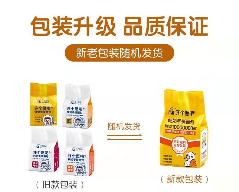 这款许个愿吧 纯奶酪手撕面包,纯奶,完全不加水,高密度组织,非常耐撕,相比于普通的吐司面包,更重,更厚实,外有嚼劲,内里软软,奶香四溢。