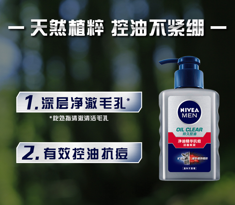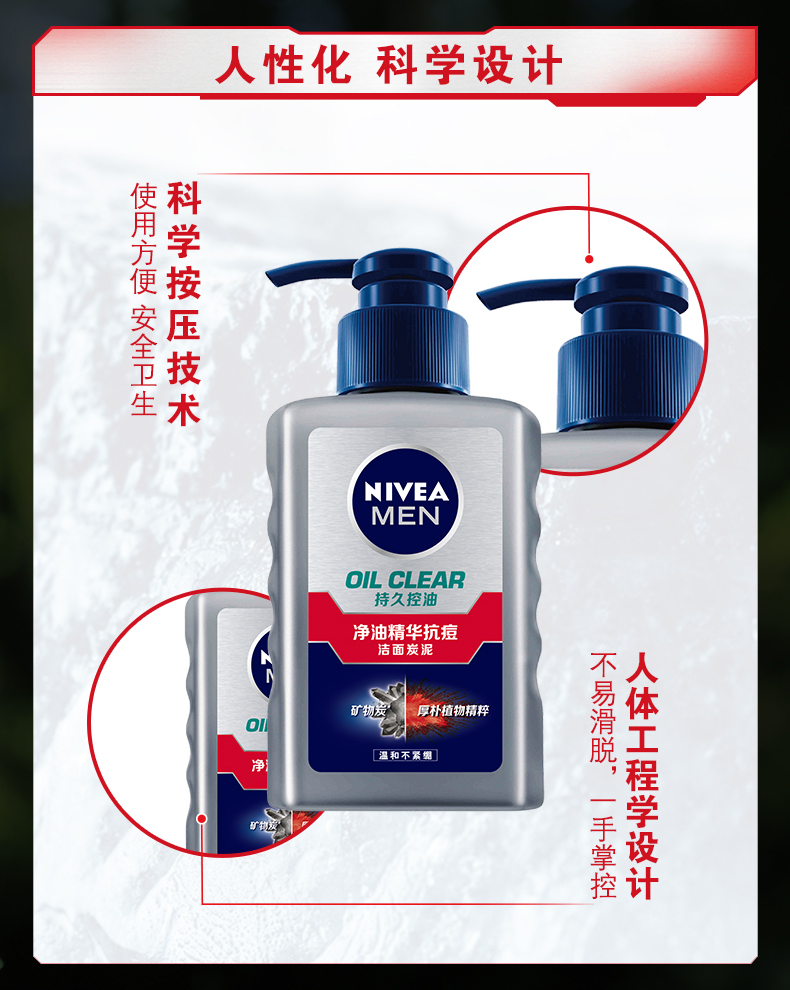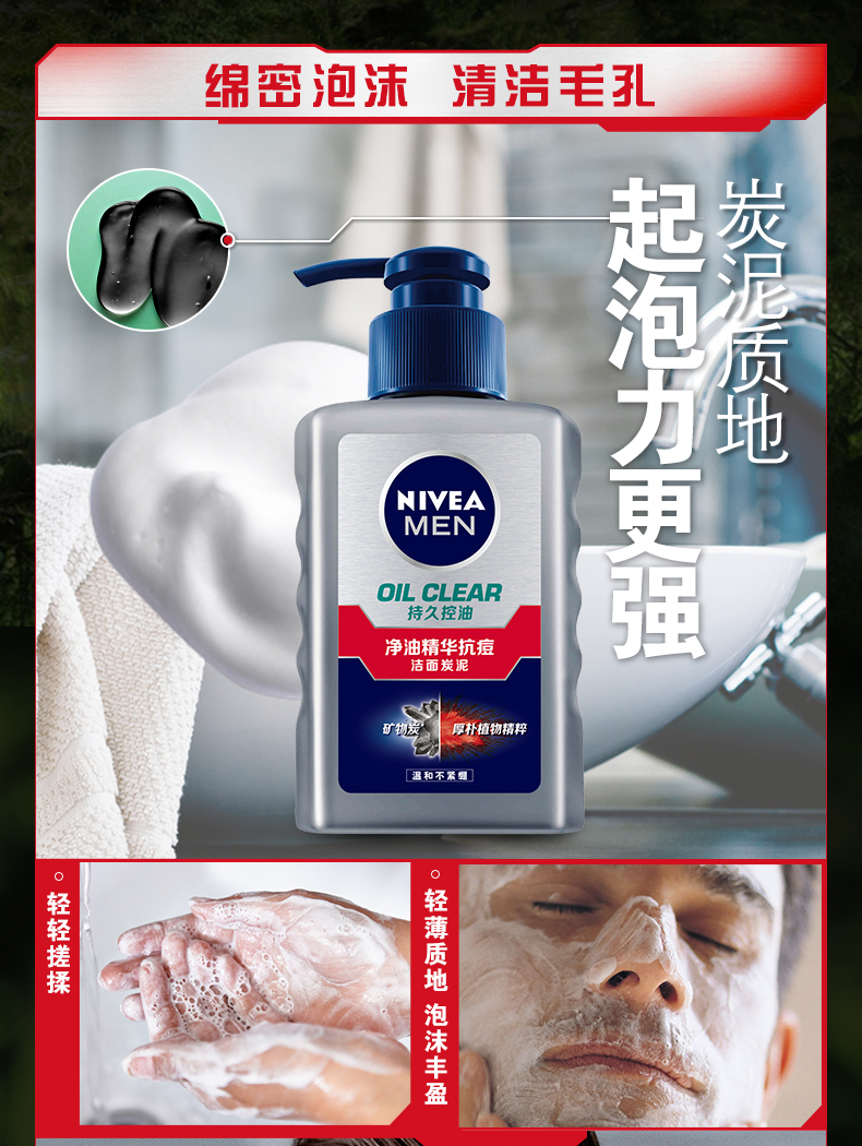 妮维雅男士精油精华抗痘洁面炭泥,尤其适合油性肌荐,能深层清洁,清爽补水易吸收,水平两平衡。专为男性肌肤设计,注入大量水分,密集保湿,提供长时间持久滋润。