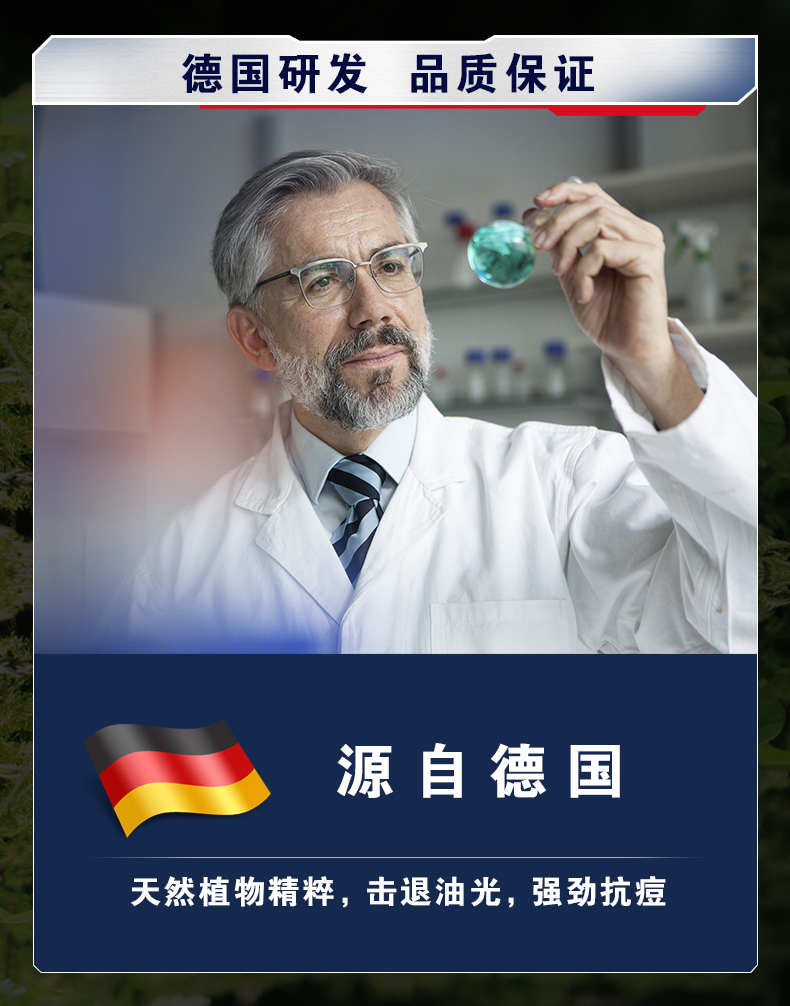 专为男士设计,温和控油,深彻清洁油脂污垢,洗后不紧绷,调整肌肤水油平衡。按压式泵头设计,更加方便卫生。