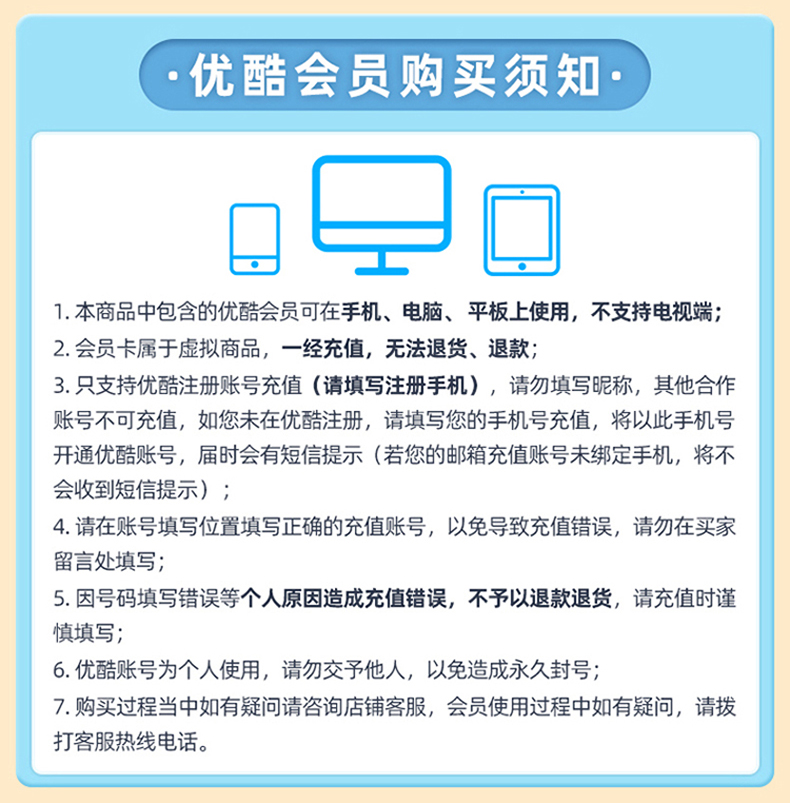 天猫优酷会员官方旗舰店0元,可领5元优惠券,实付10元到手,到账1个月。这款优酷的VIP黄金视频会员只能在手机、电脑、iPad上使用,不支持TV端。下单时需要填写优酷的账号,如果没有的,可以去注册一下。